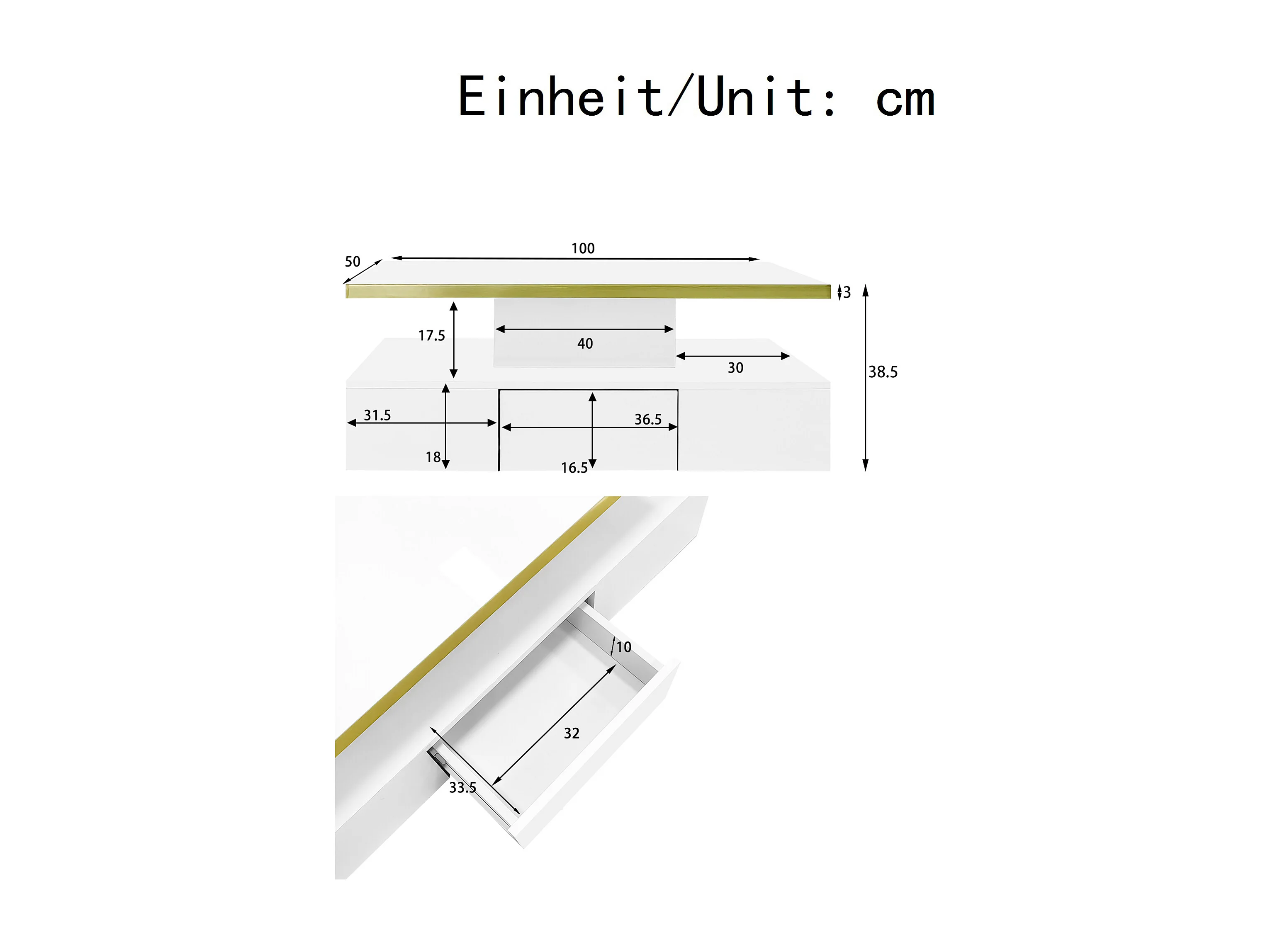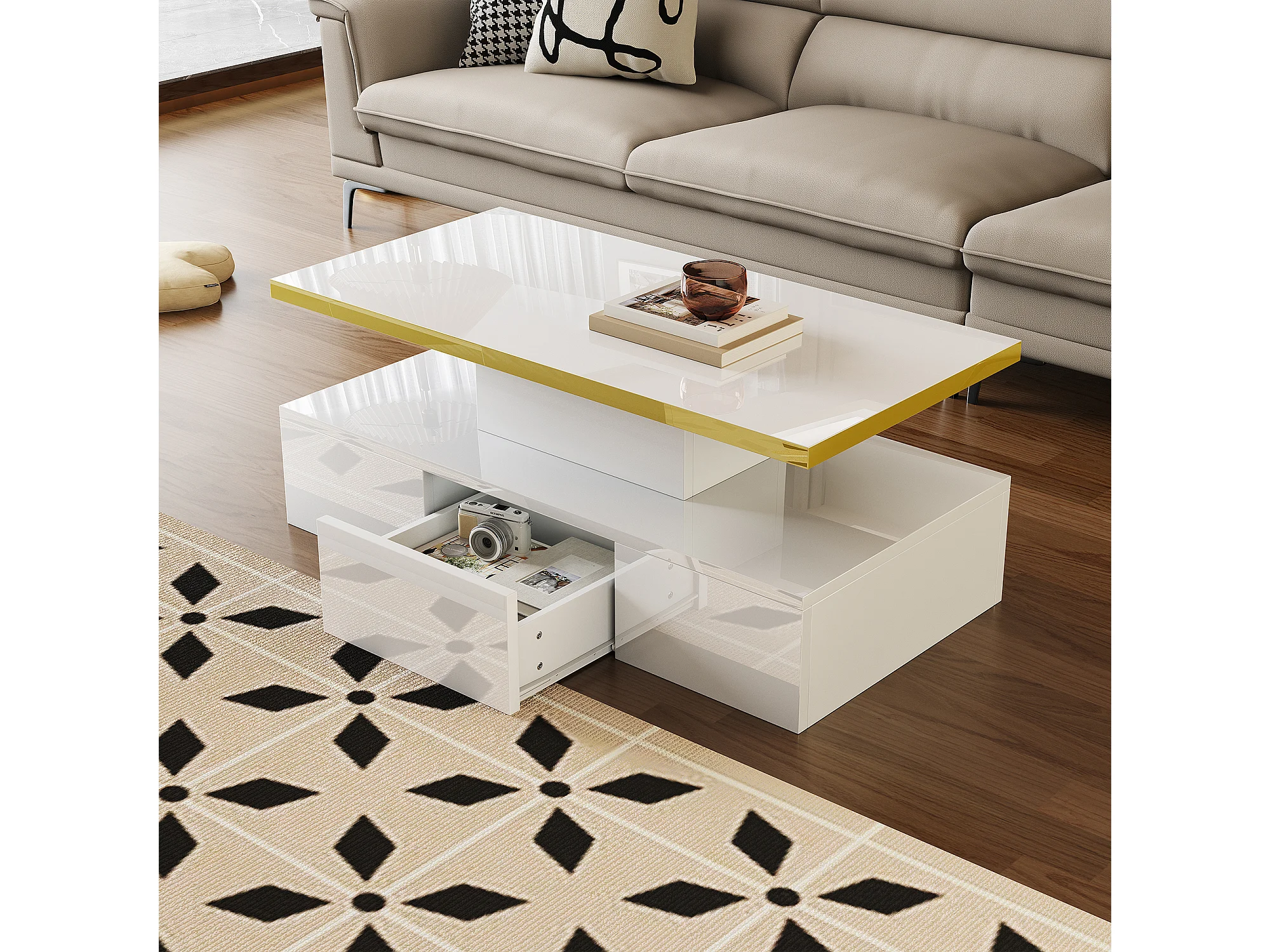 Table basse avec tiroir et LED - Finition laquée brillante - Blanc