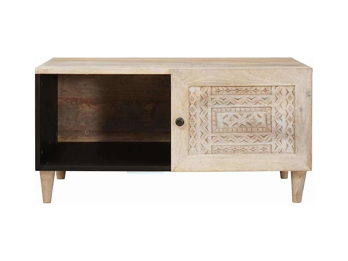 Table basse Beige 80 x 50 x 40 cm bois de manguier massif