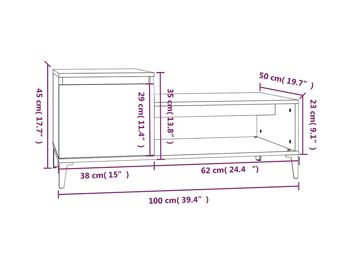 Table basse Blanc 100x50x45 cm Bois d'ingénierie