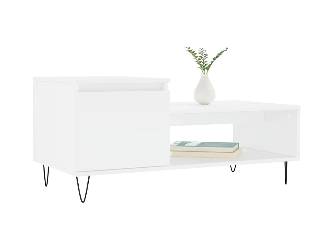 Table basse Blanc brillant 100x50x45 cm Bois d'ingénierie