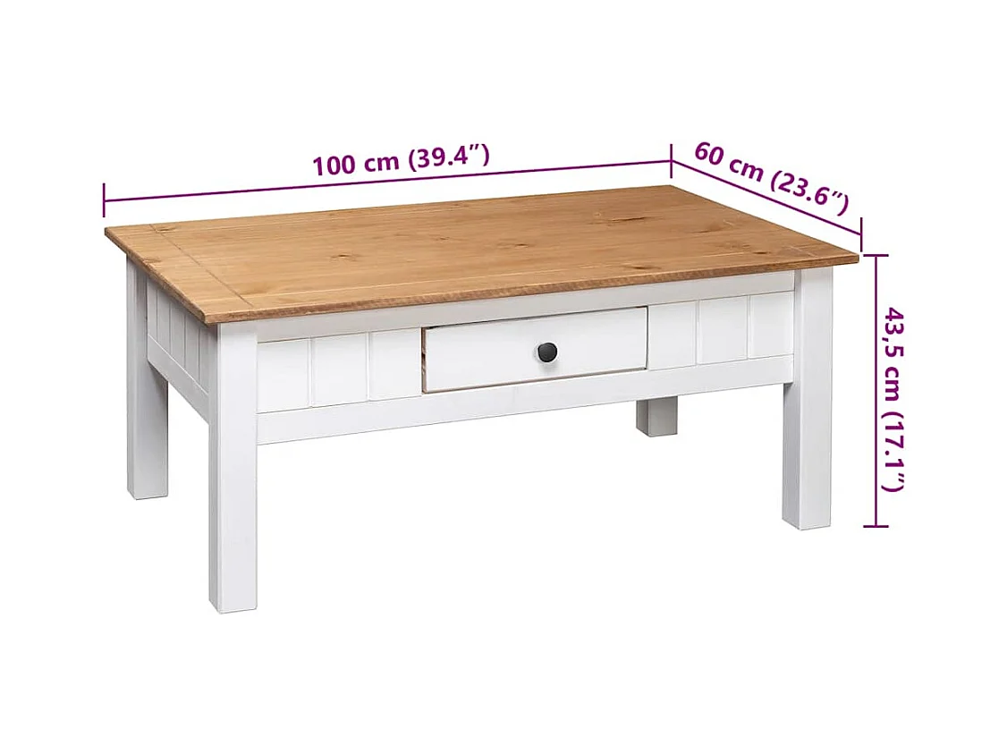 Table basse Blanc 100x60x45 cm Pin massif Assortiment Panama