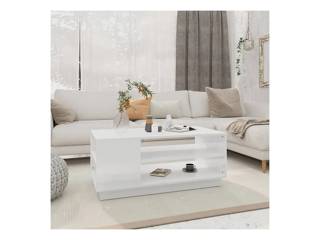 Table basse blanc 102x55x42 cm bois d'ingénierie FR41125