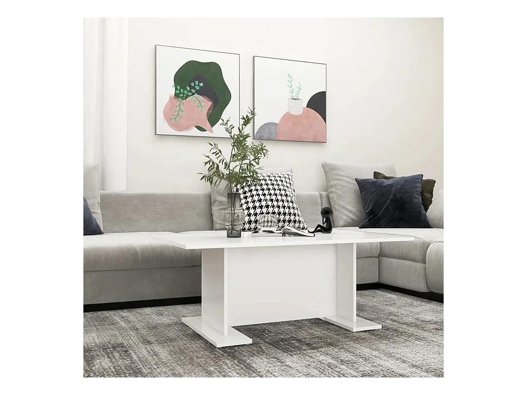 Table basse Blanc brillant 102x50x44 cm bois d'ingénierie