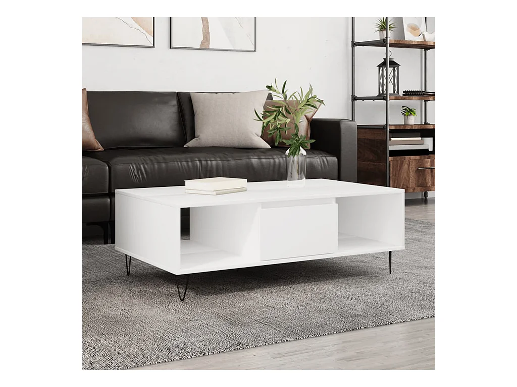 Table basse blanc 104x60x35 cm bois d'ingénierie