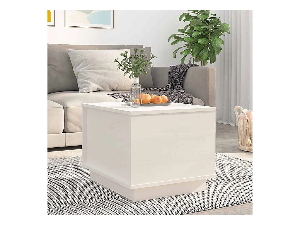 Table basse Blanc 80x50x40 cm Bois massif de pin