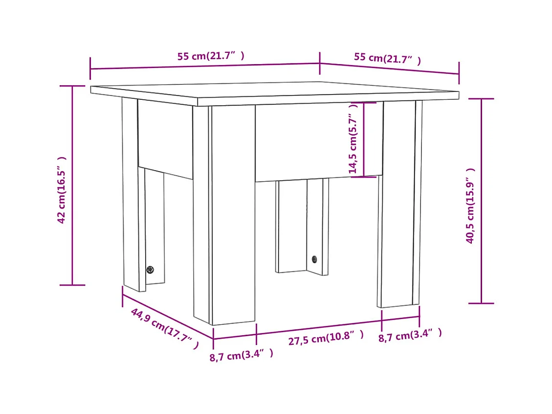 Table basse blanc 55x55x42 cm bois d'ingénierie