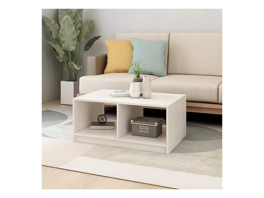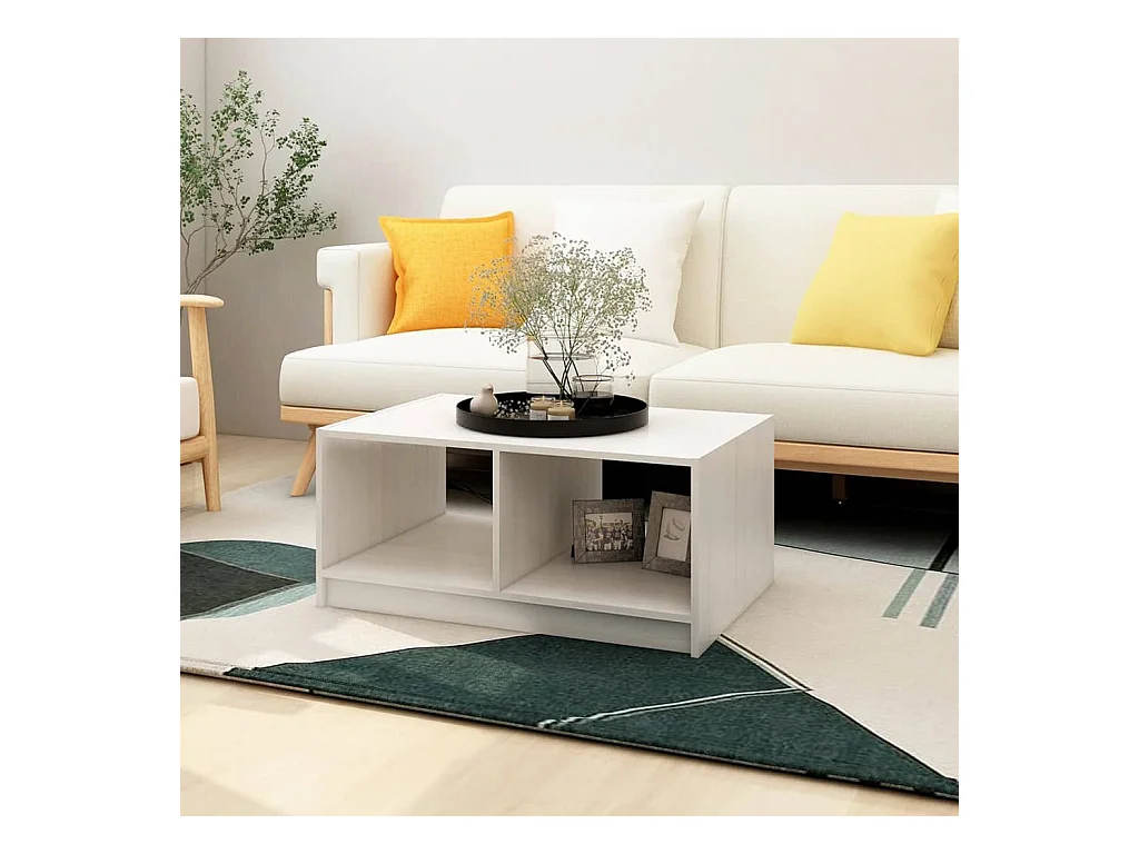 Table basse blanc 75x50x33,5 cm bois de pin massif