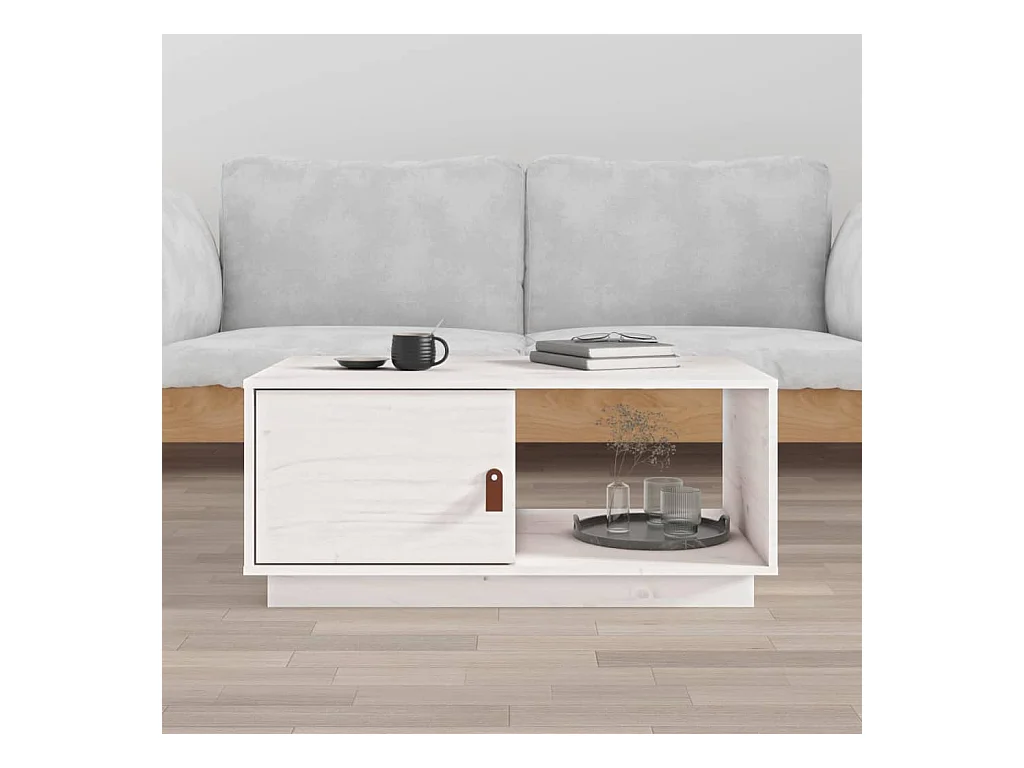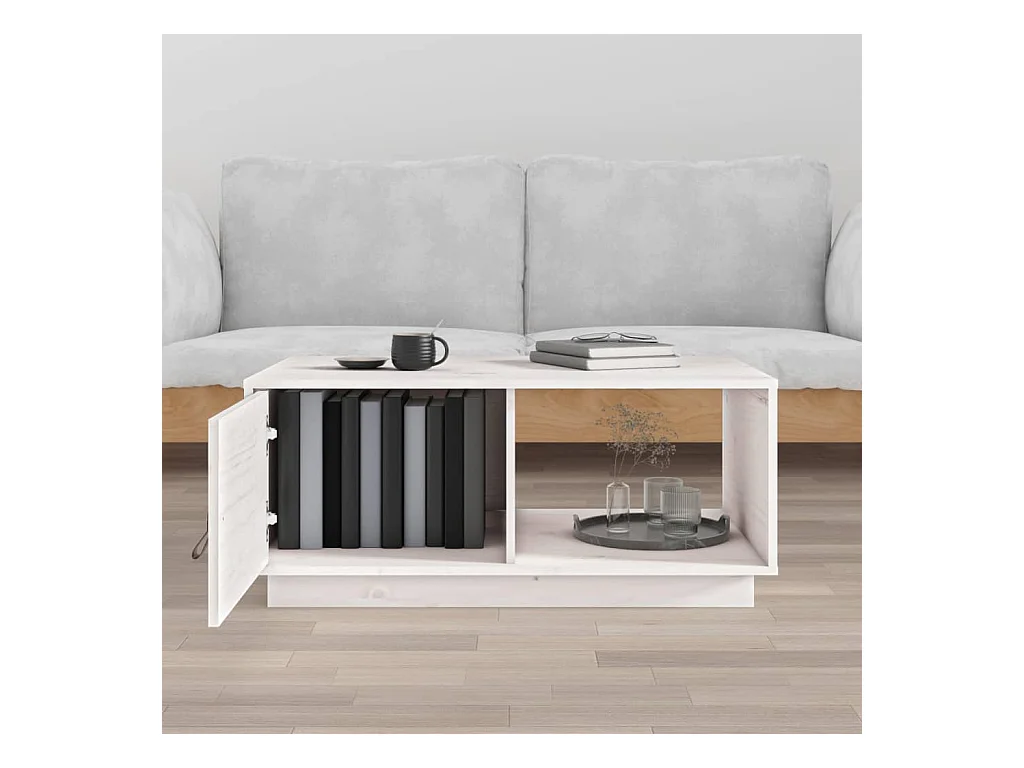 Table basse Blanc 80x50x35,5 cm Bois massif de pin