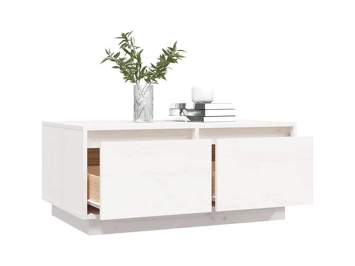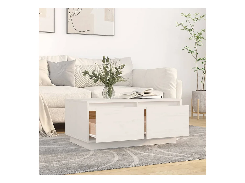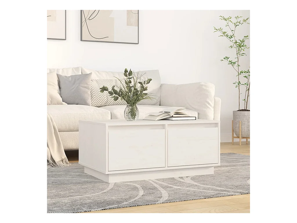 Table basse Blanc 80x50x35 cm Bois massif de pin