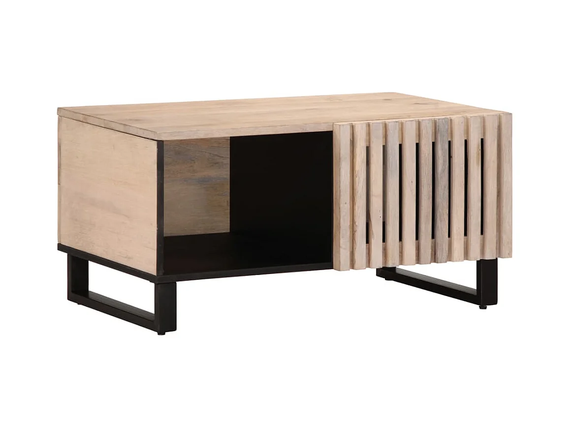Table basse blanc 80x51x40 cm bois de manguier massif