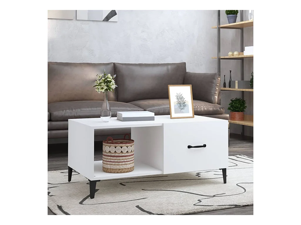 Table basse blanc 90x50x40 cm bois d'ingénierie OFR87196 BonneVie Meuble