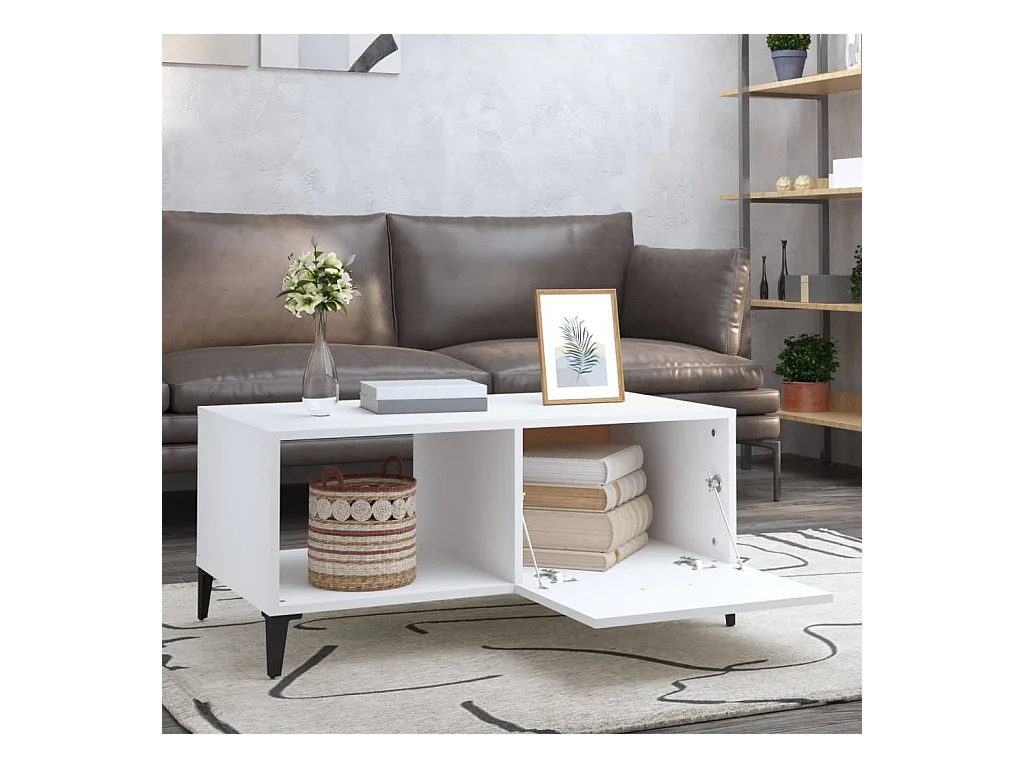 Table basse blanc 90x50x40 cm bois d'ingénierie OFR77670 BonneVie Meuble