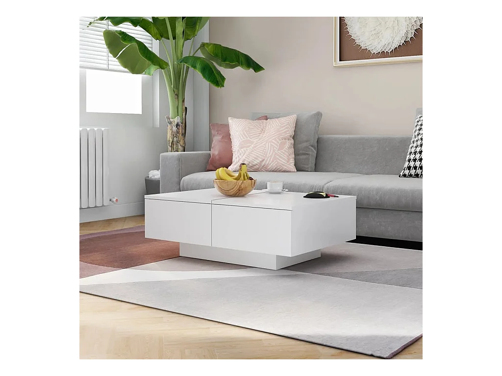 Table basse blanc brillant 90x60x35 cm bois d'ingénierie