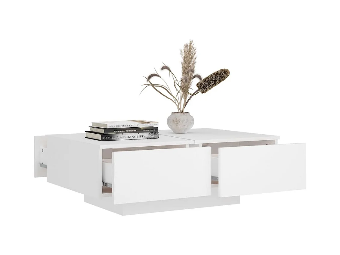 Table basse blanc 90x60x35 cm bois d'ingénierie