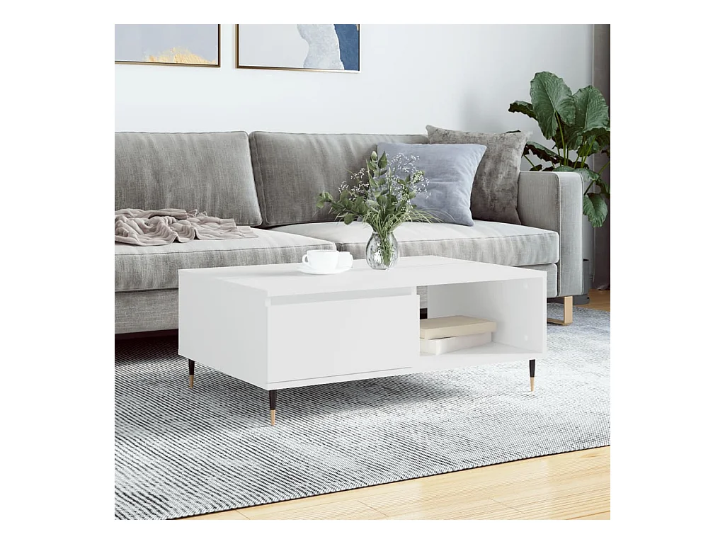 Table basse blanc 104x60x35 cm bois d'ingénierie