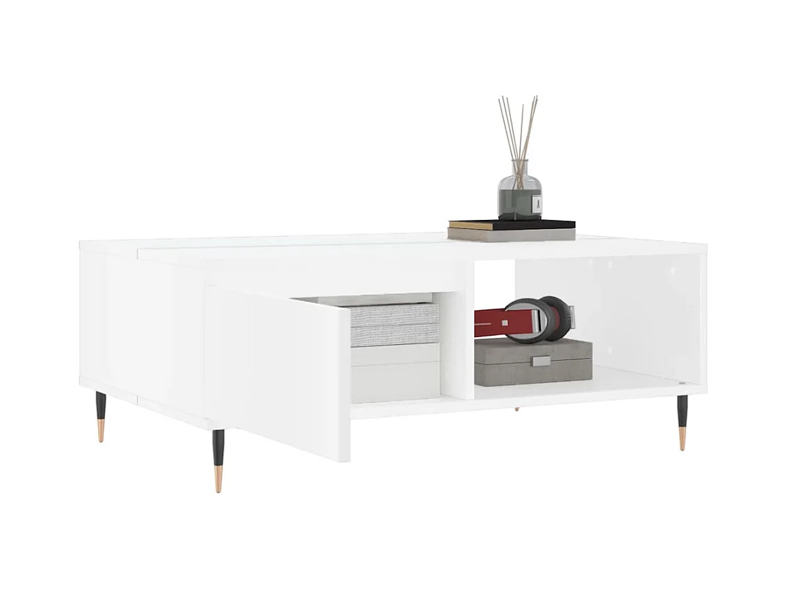 Table basse blanc brillant 90x60x35 cm bois d'ingénierie