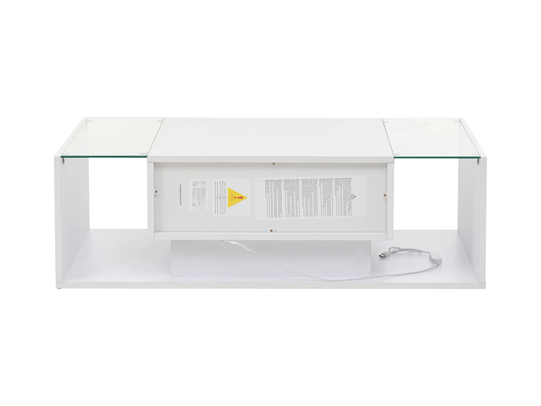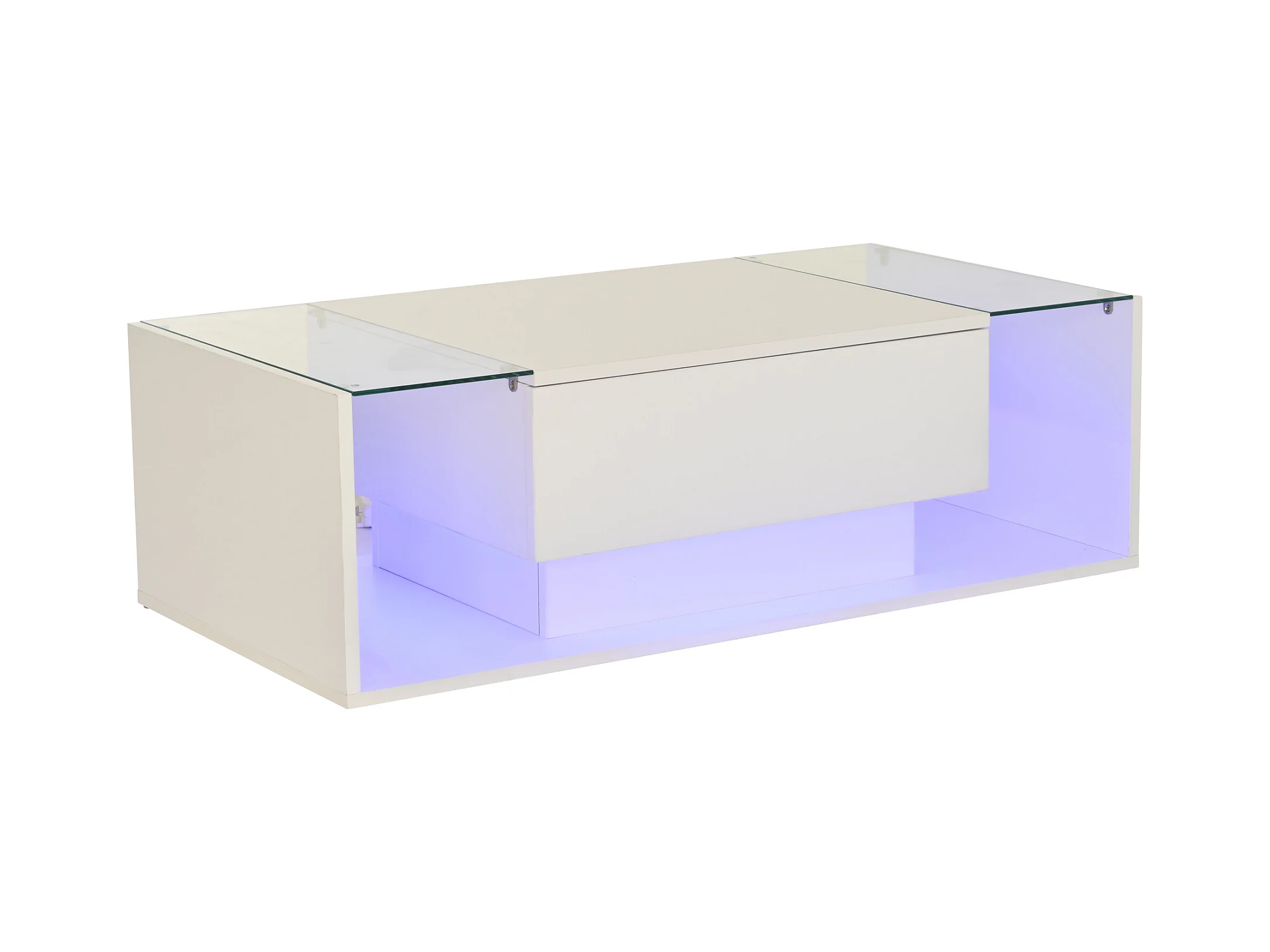 Table basse blanc avec 1 tiroir de rangement et étagères ouvertes, éclairage LED - pour salon