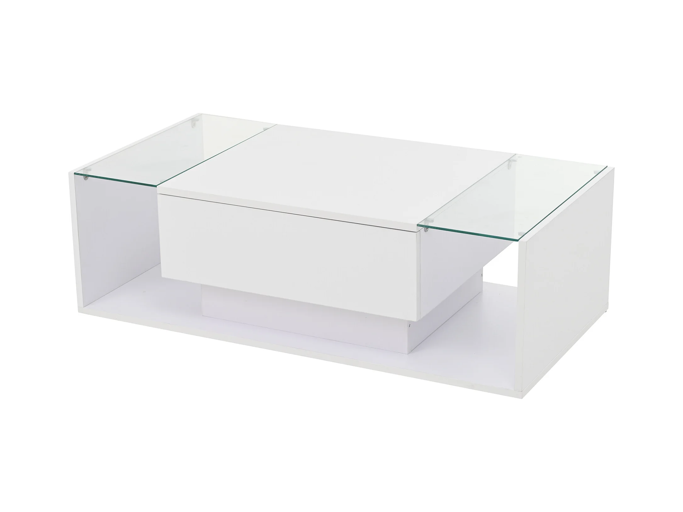 Table basse blanche avec plateau noir rétractable et 1 tiroir de rangement - Éclairage LED