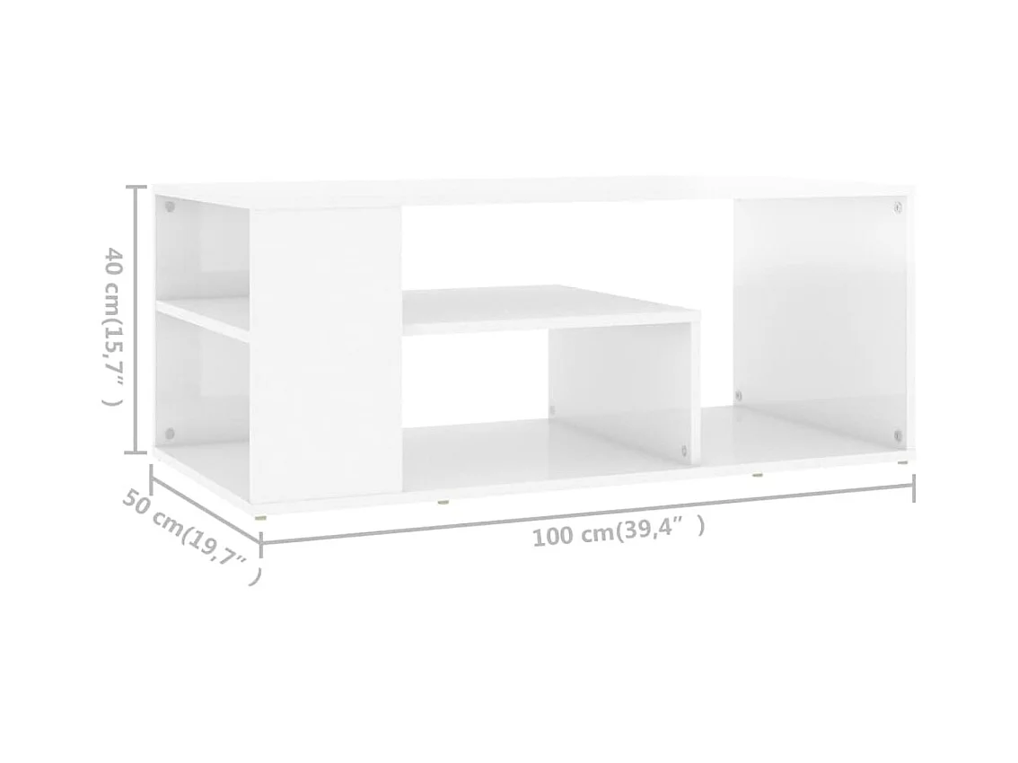 Table basse blanc brillant 100x50x40 cm bois d'ingénierie