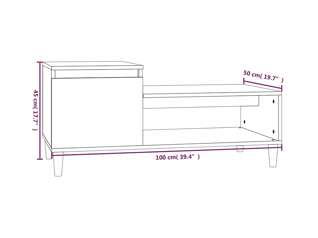 Table basse Blanc brillant 100x50x45 cm Bois d'ingénierie