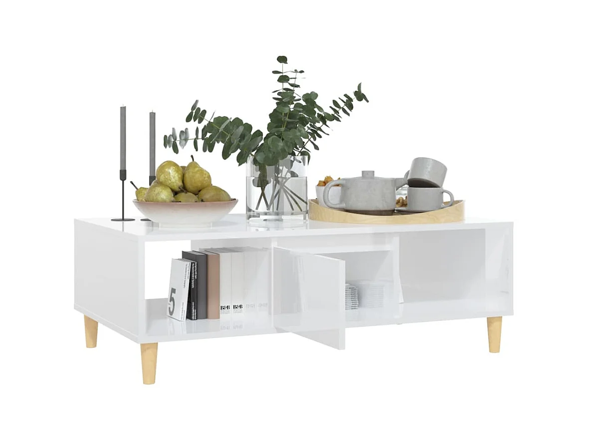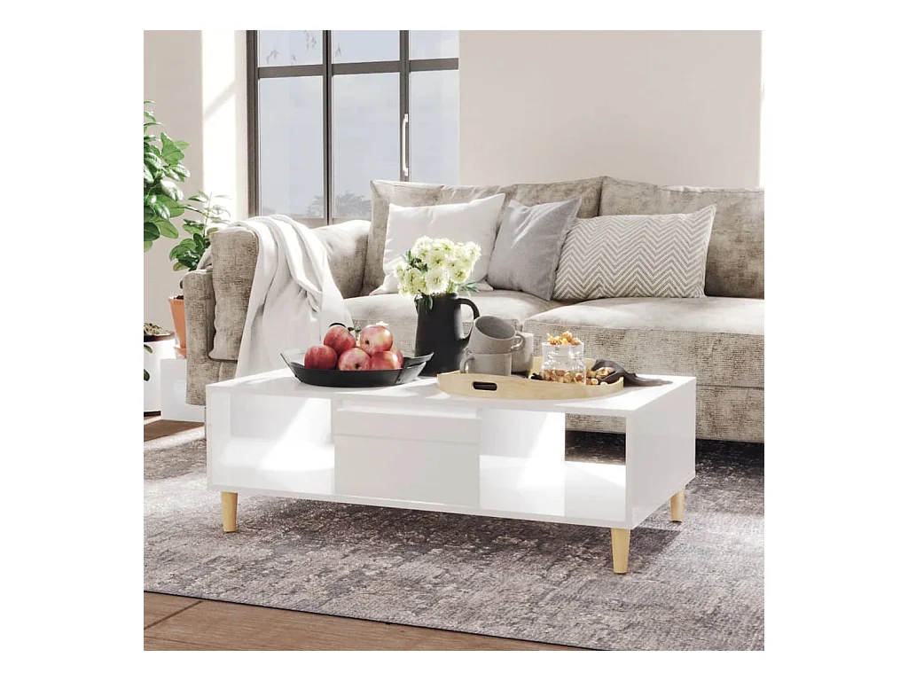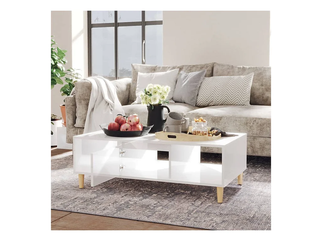Table basse Blanc brillant 103,5x60x35 cm Aggloméré