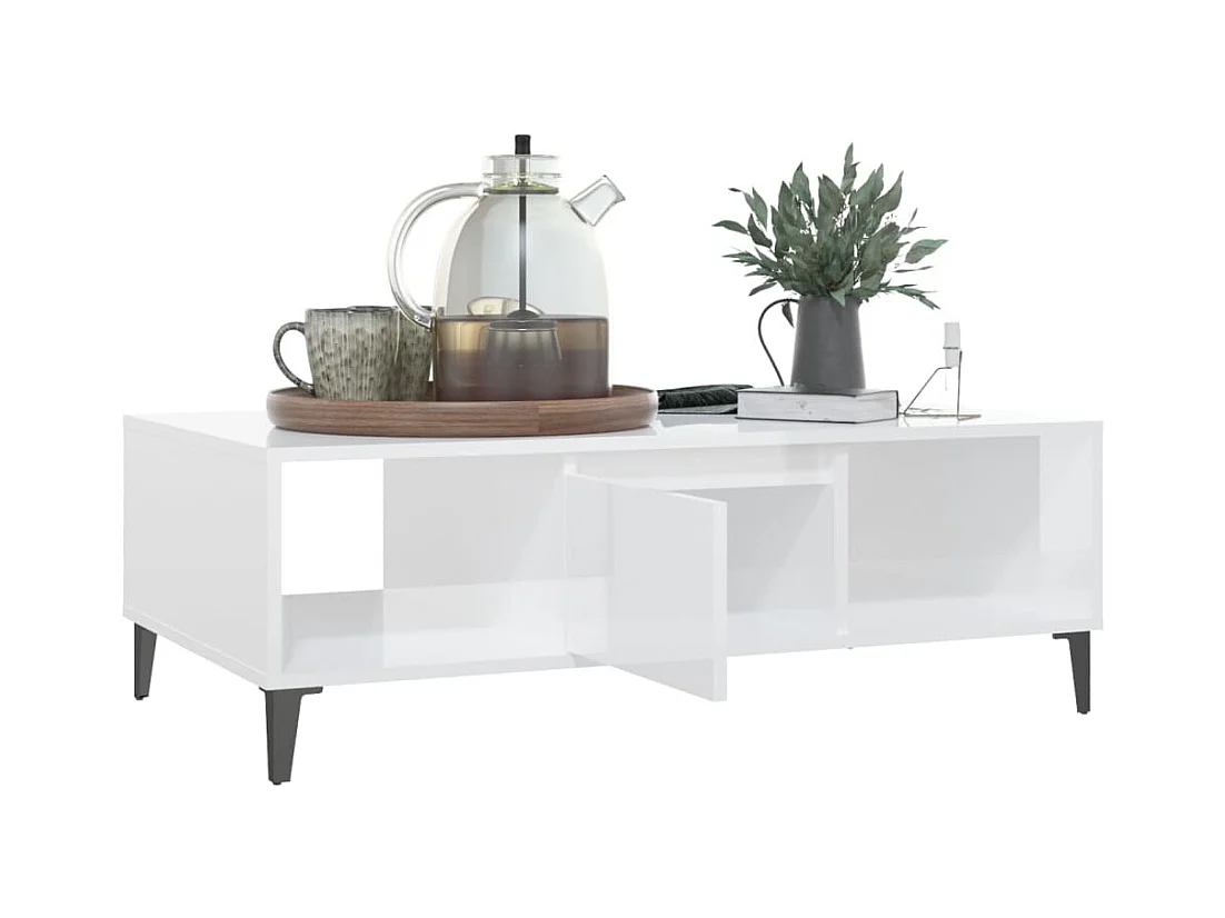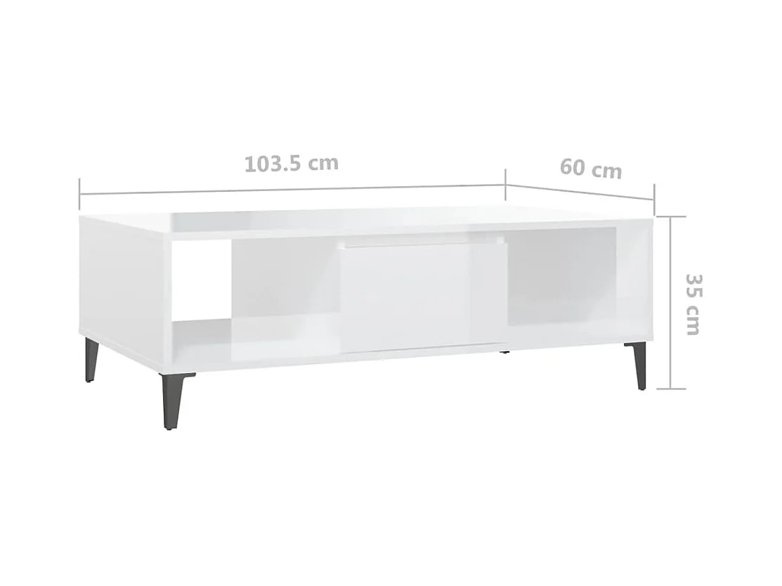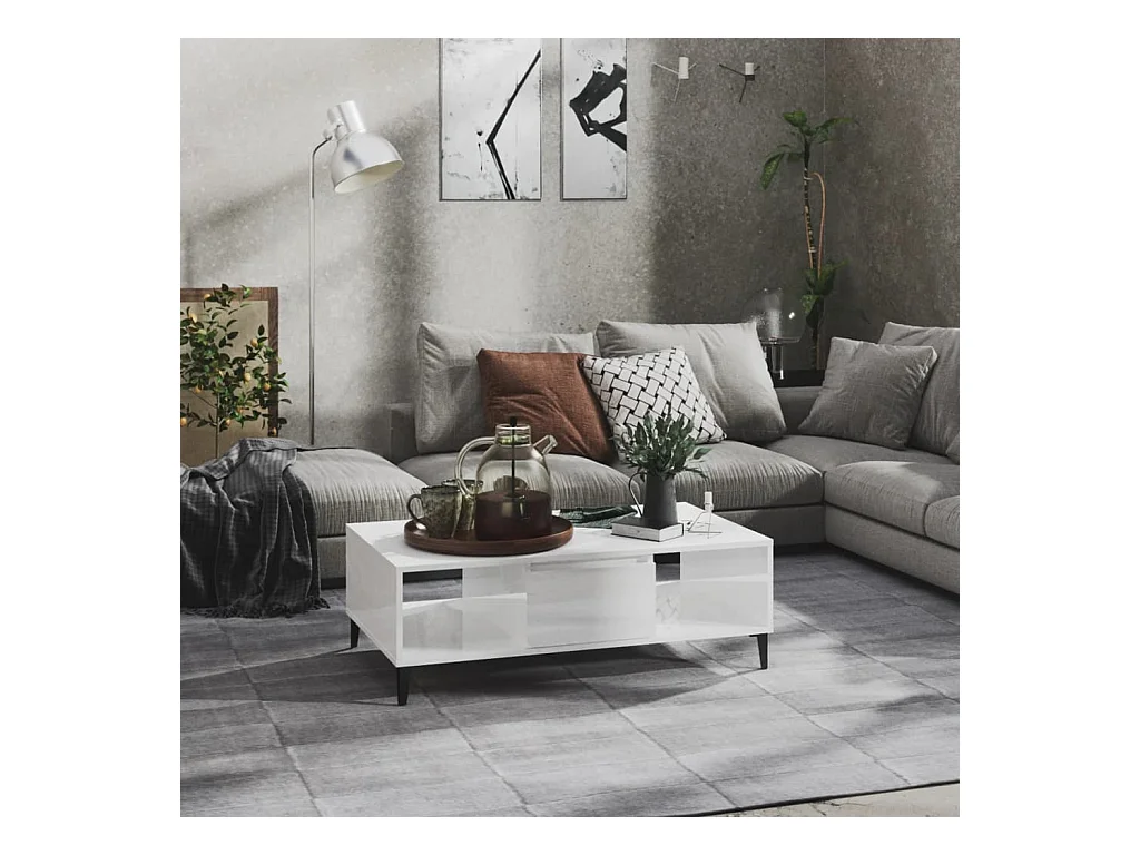 Table basse blanc brillant 103,5x60x35 cm bois d'ingénierie