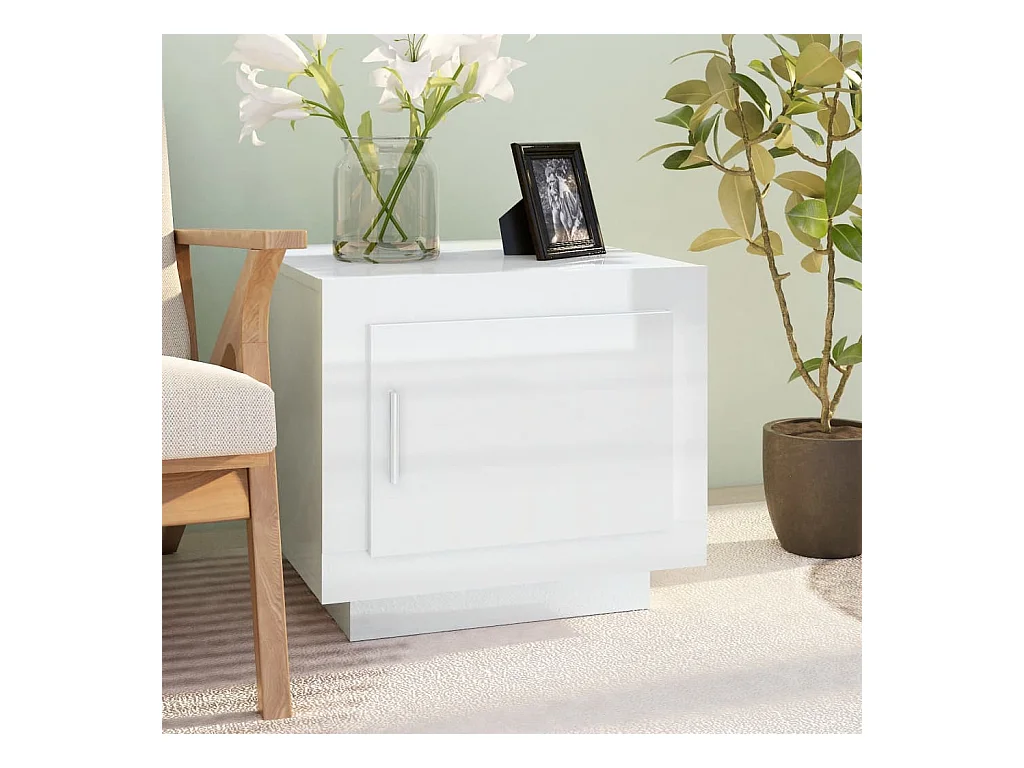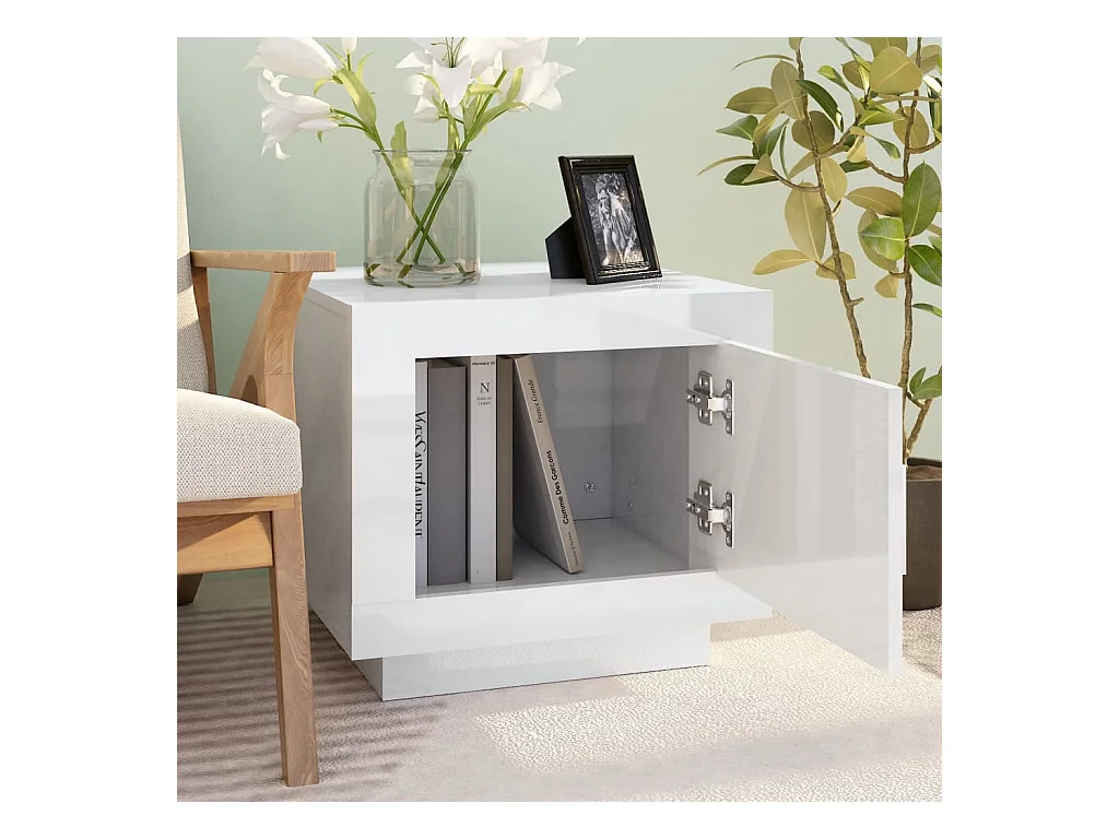 Table basse blanc brillant 51x50x45 cm bois d'ingénierie