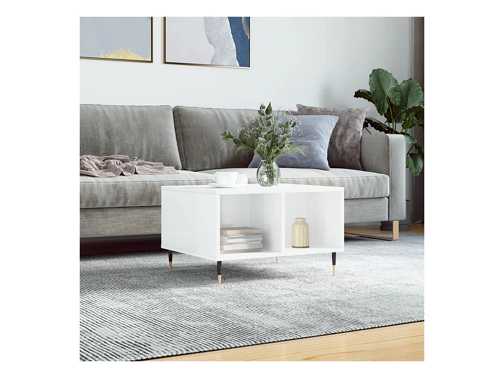 Table basse Blanc brillant 60x50x36,5 cm Bois d'ingénierie