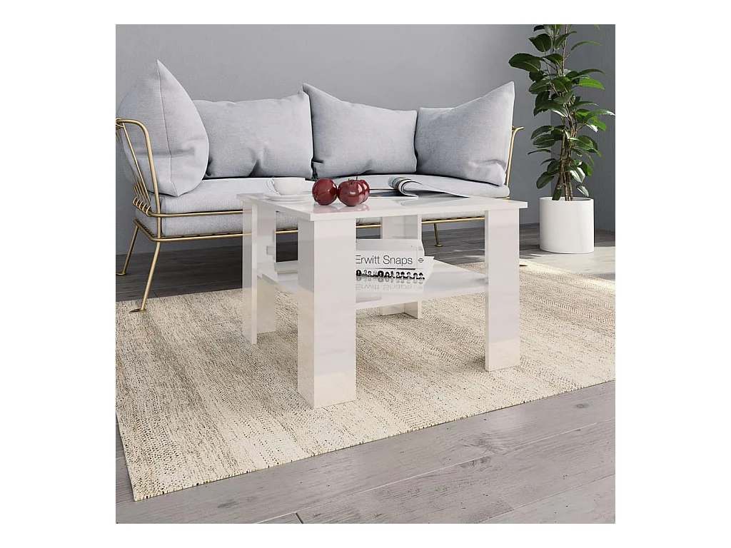 Table basse blanc brillant 60x60x30 cm bois d'ingénierie
