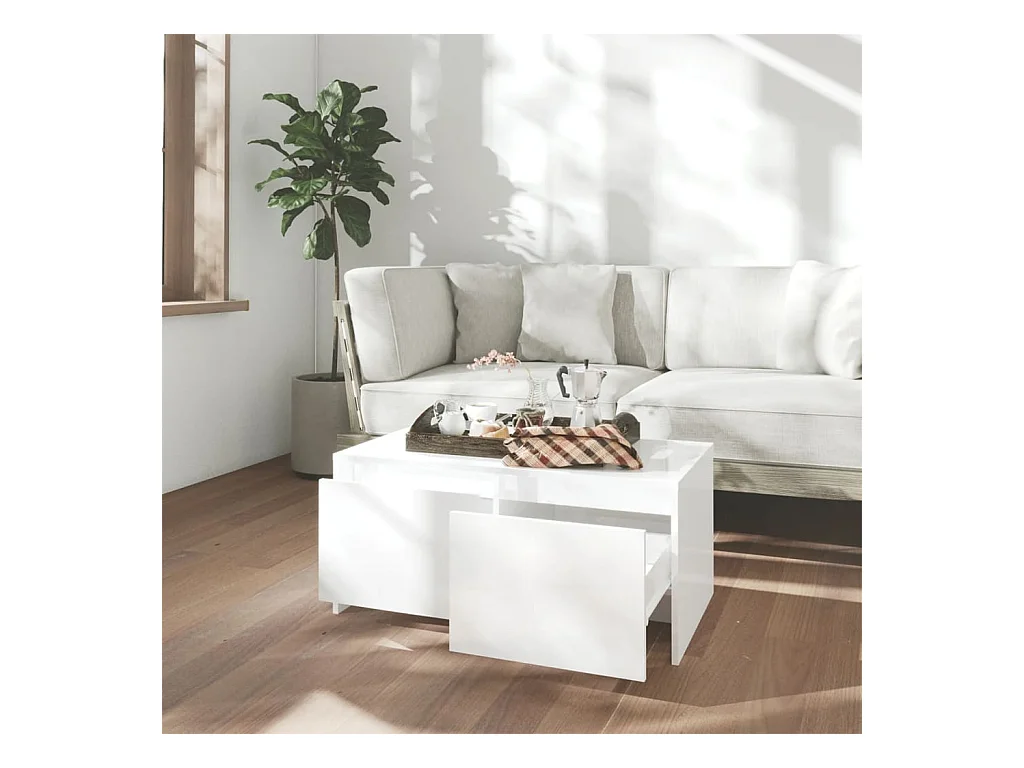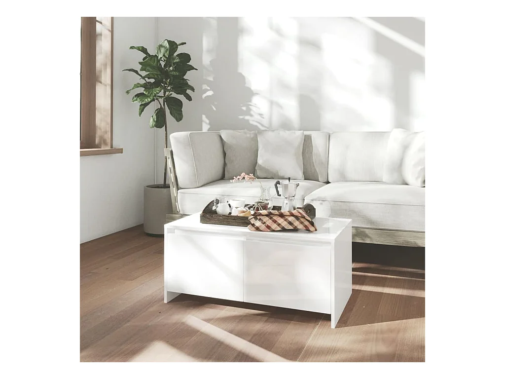 Table basse Blanc brillant 90x50x41,5 cm Aggloméré OFR15816 BonneVie Meuble
