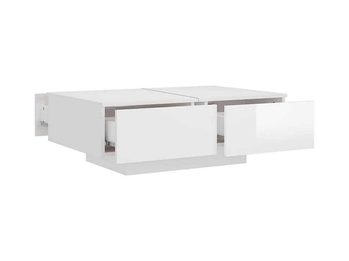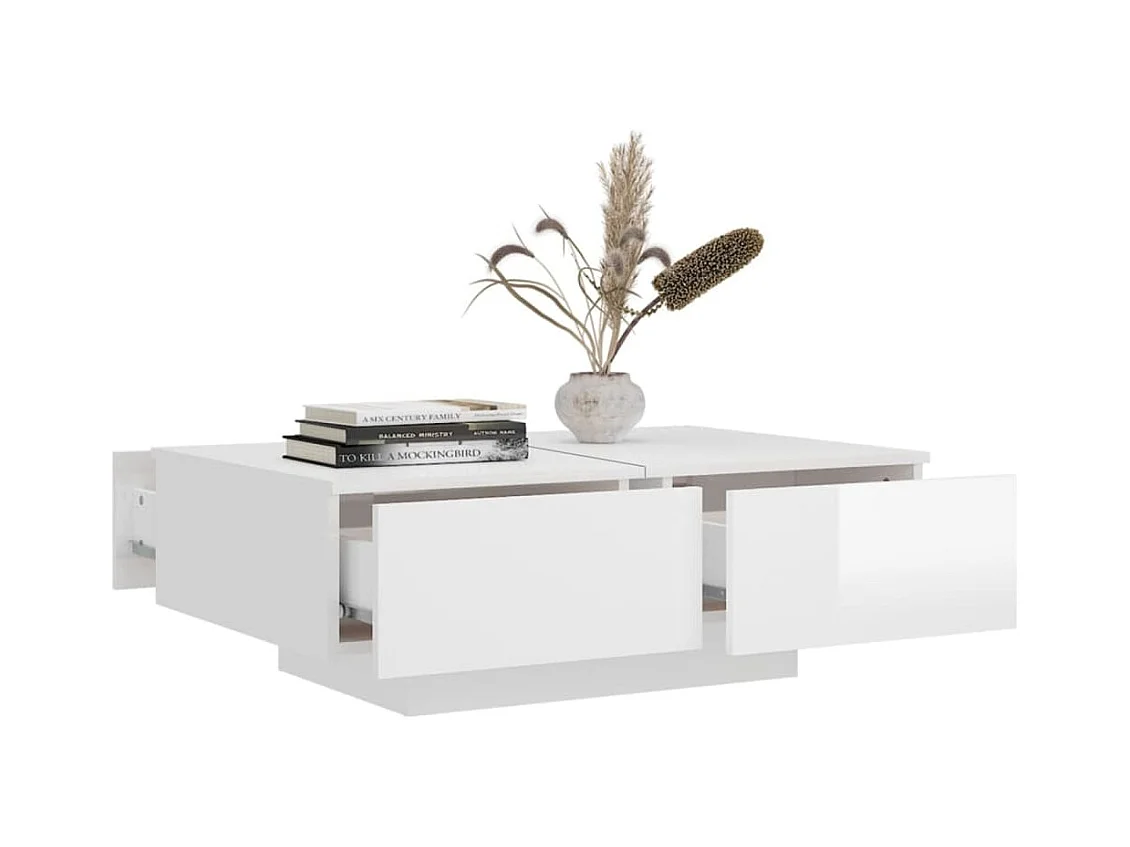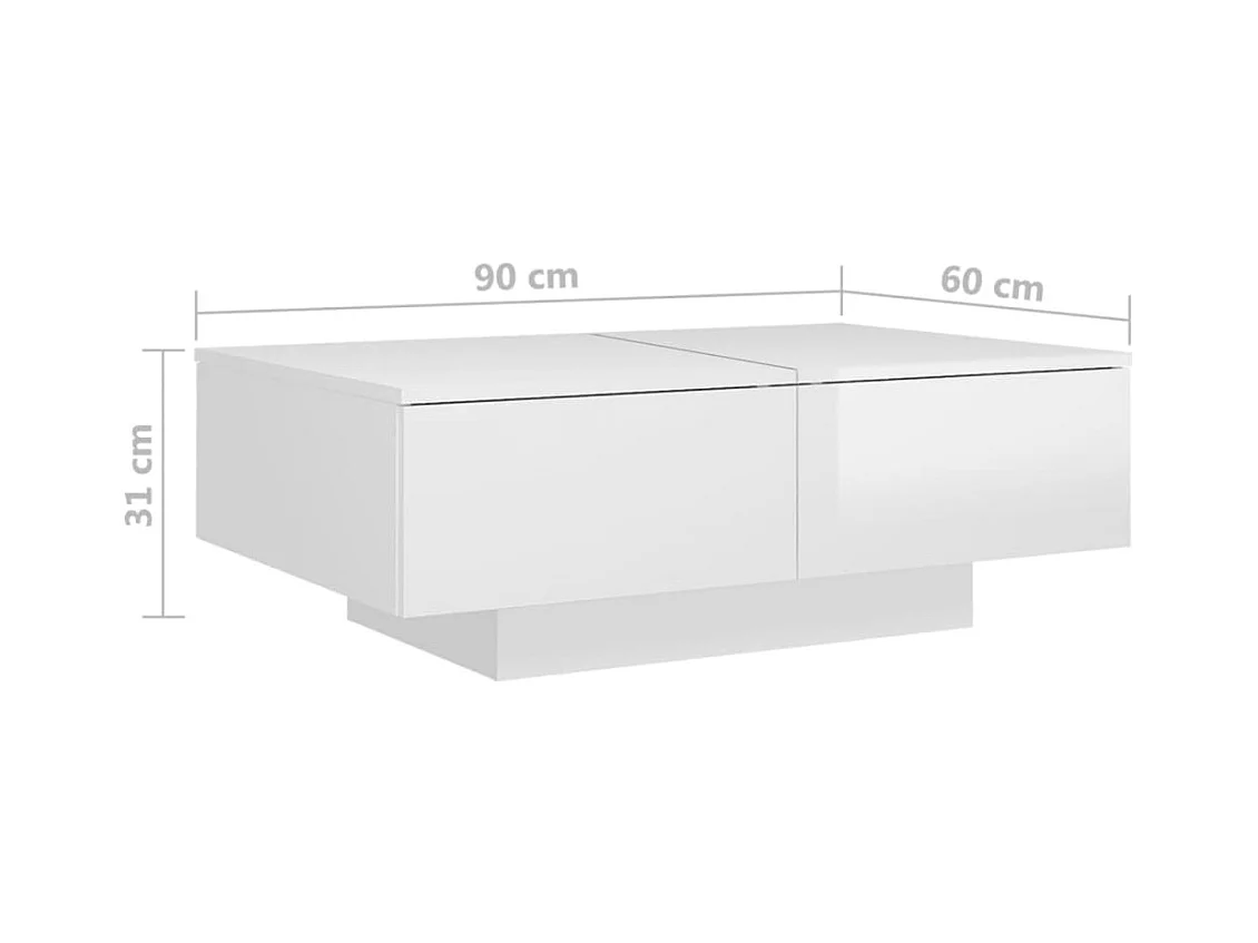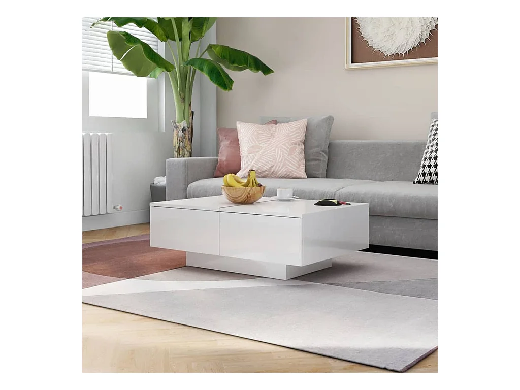 Table basse blanc brillant 90x60x35 cm bois d'ingénierie