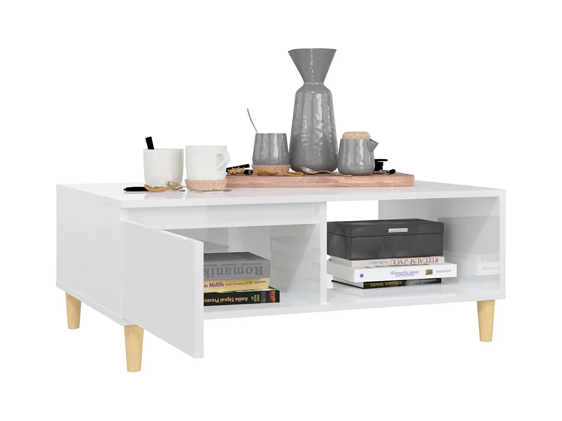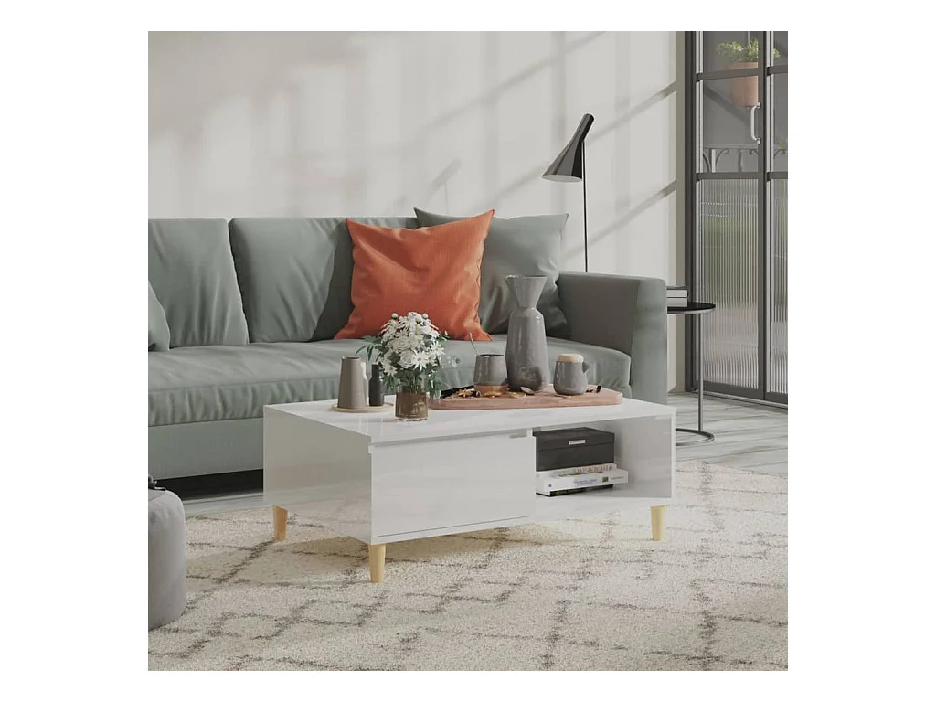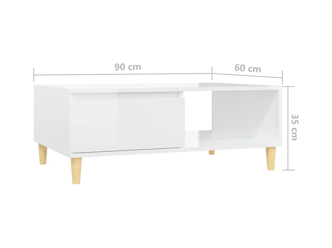 Table basse blanc brillant 90x60x35 cm bois d'ingénierie