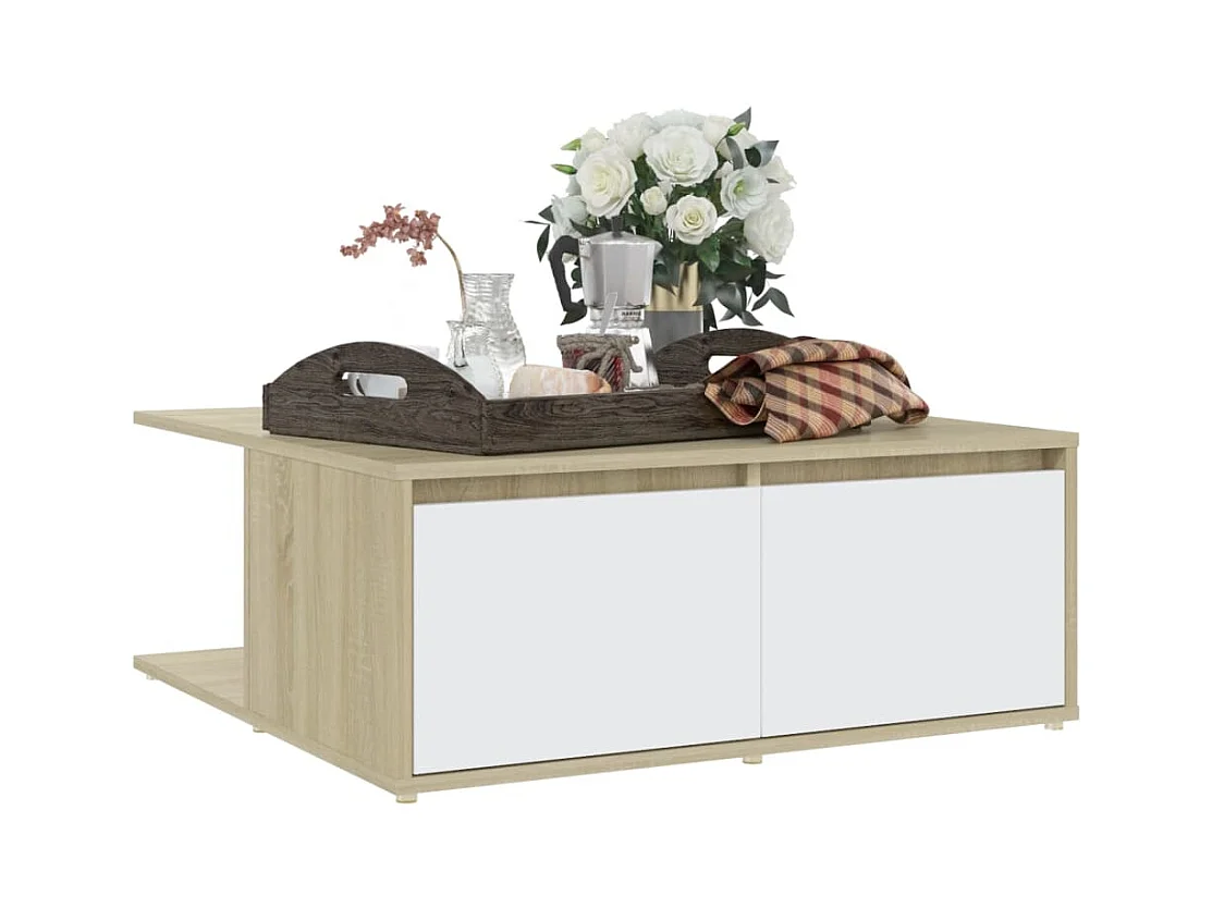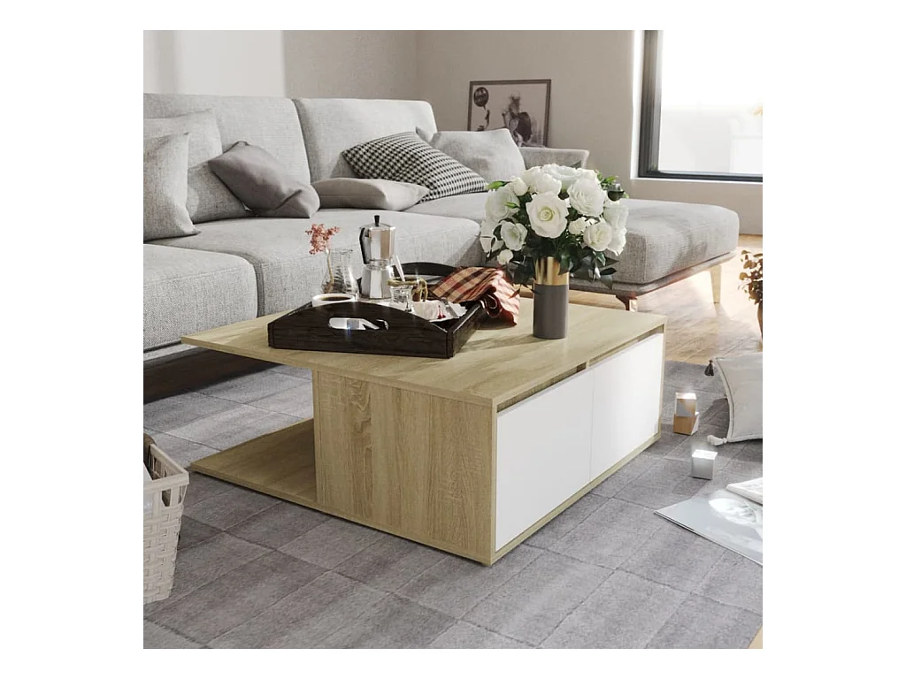 Table basse Blanc et chêne sonoma 80x80x31 cm Aggloméré
