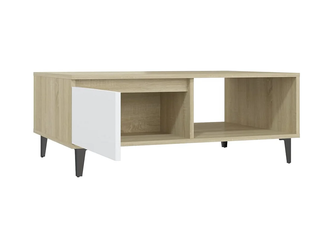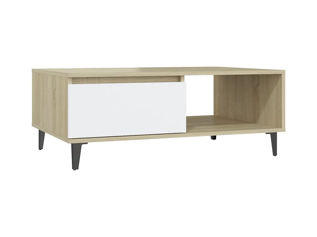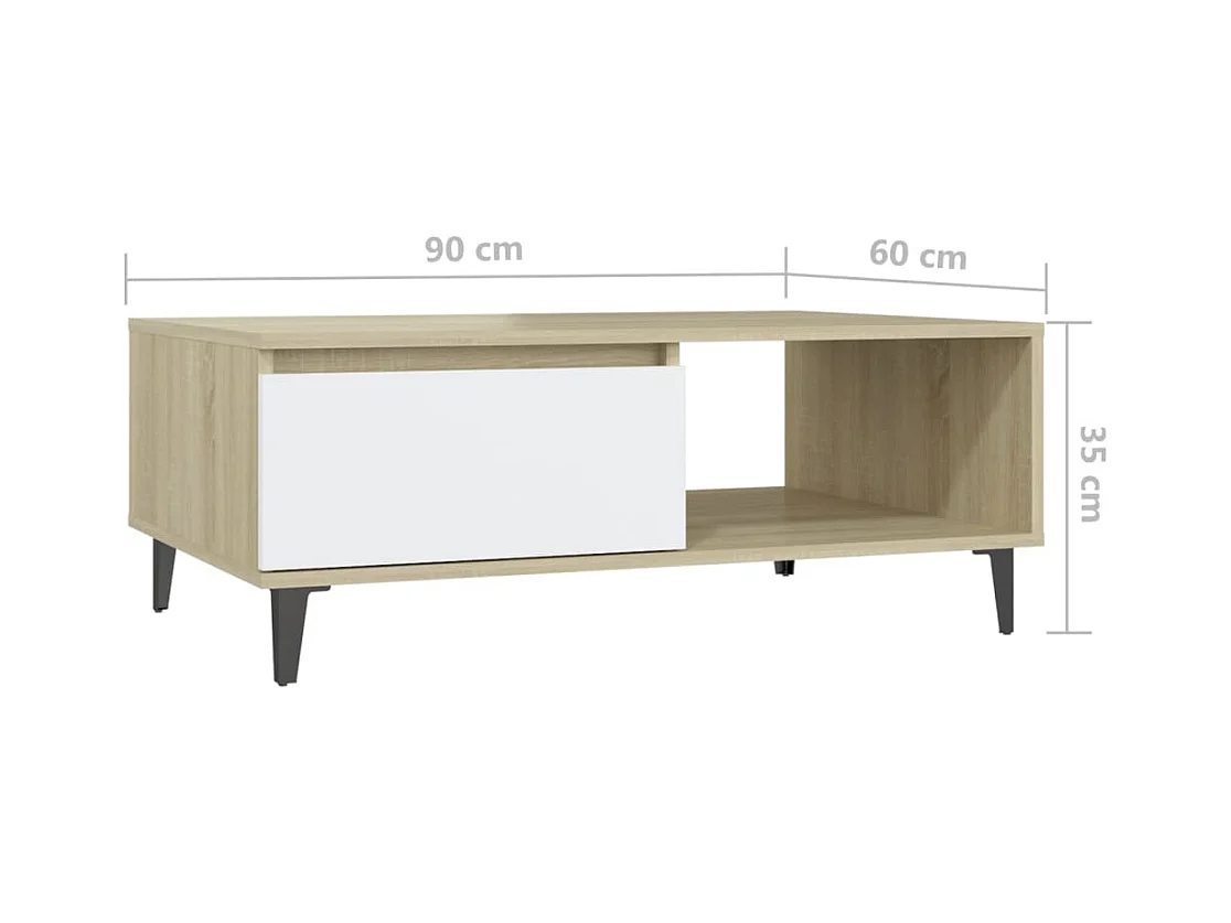Table basse blanc et chêne sonoma 90x60x35 cm bois d'ingénierie