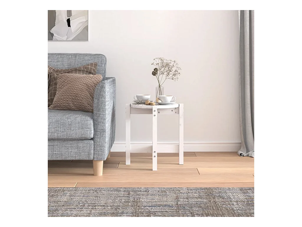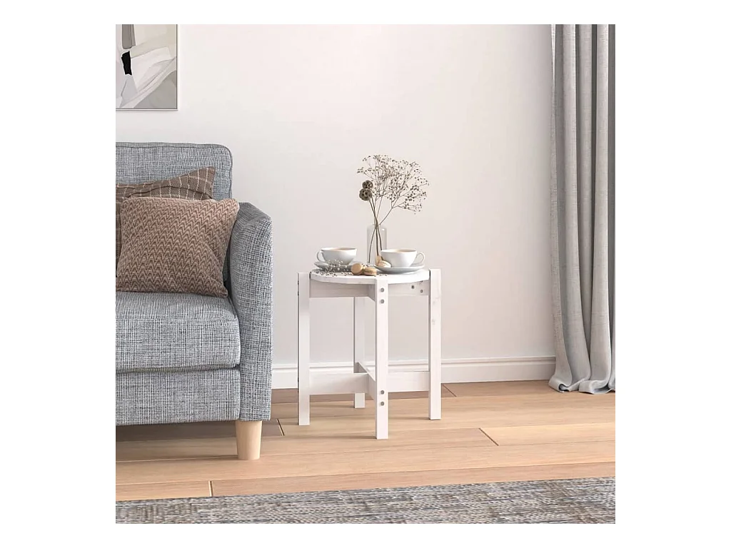 Table basse Blanc Ø 42,5x45 cm Bois massif de pin OFR78972 BonneVie Meuble