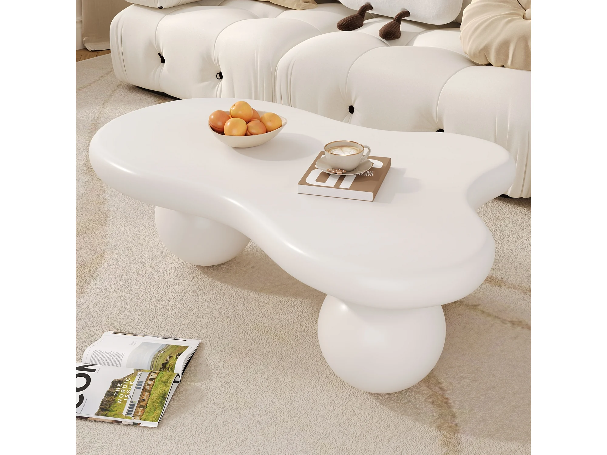 Table basse blanche - Table basse avec lumières LED et pieds ronds blancs - design en forme de nuage - pour salon et chambre d'enfant