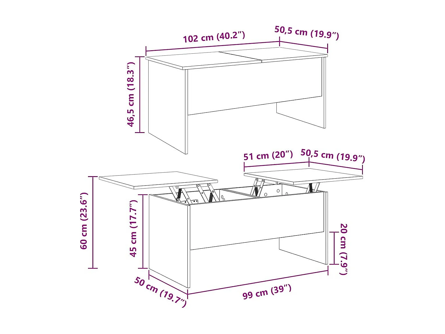 Table basse Bois ancien 102 x 50,5 x 46,5 cm Bois d'ingénierie