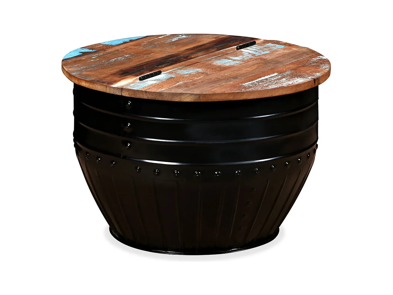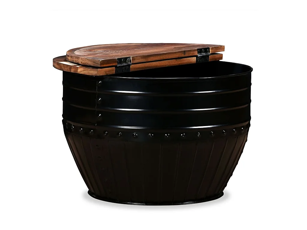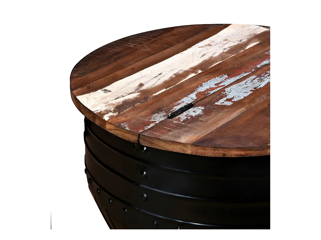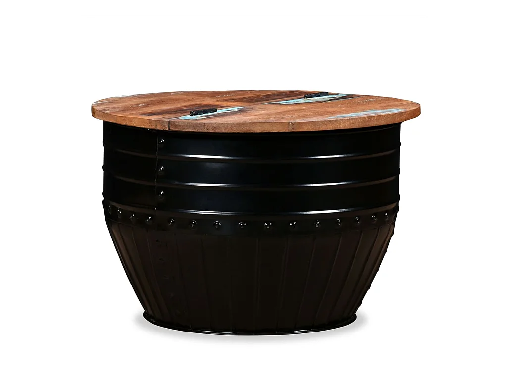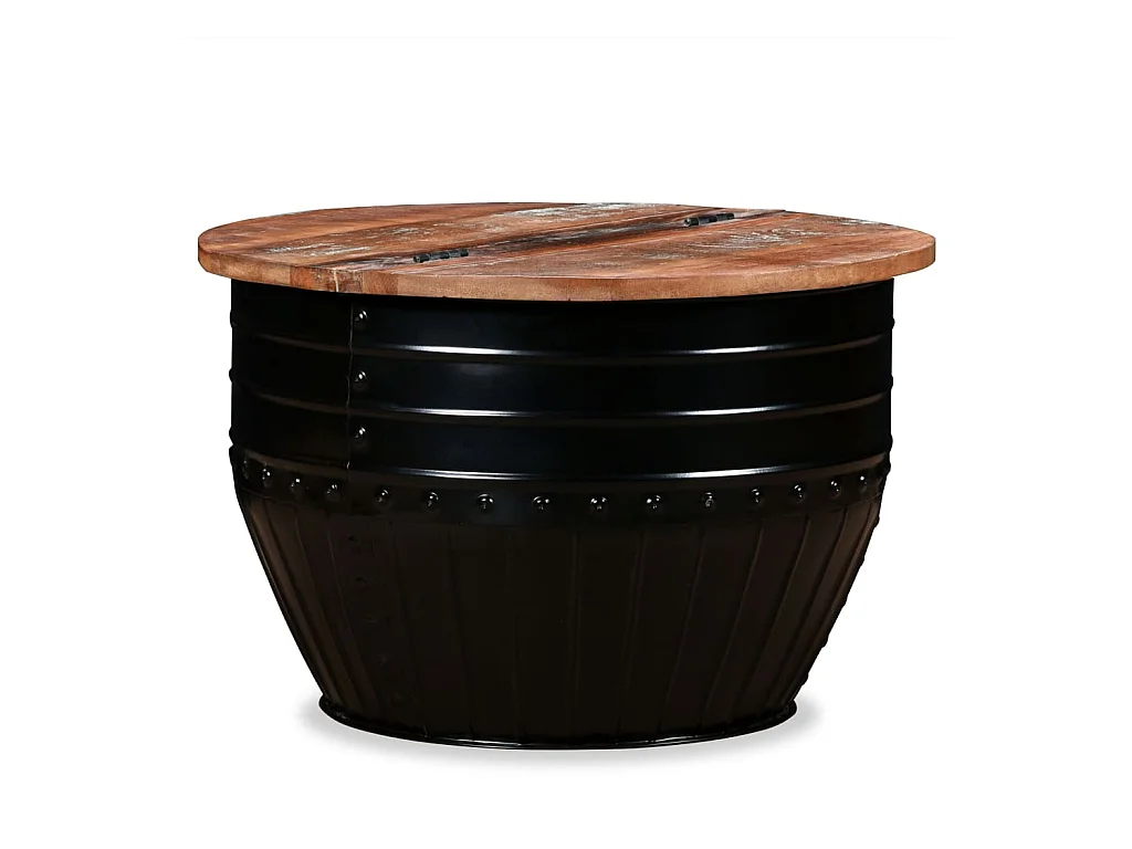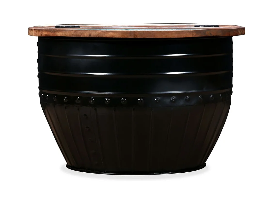 Table basse Bois de récupération massif Forme de baril Noir