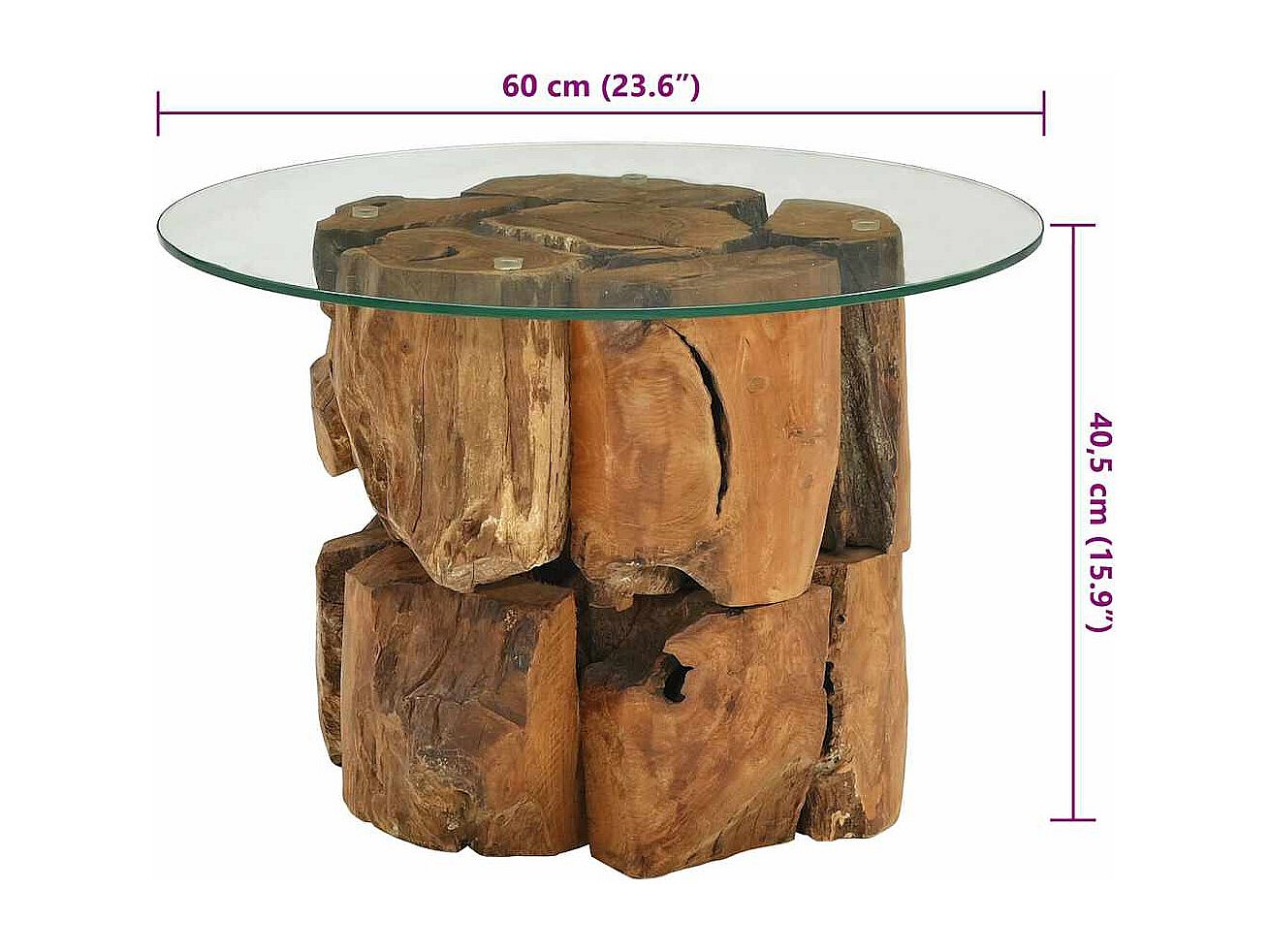 Table basse ronde Ø55x40 cm teck de récupération massif