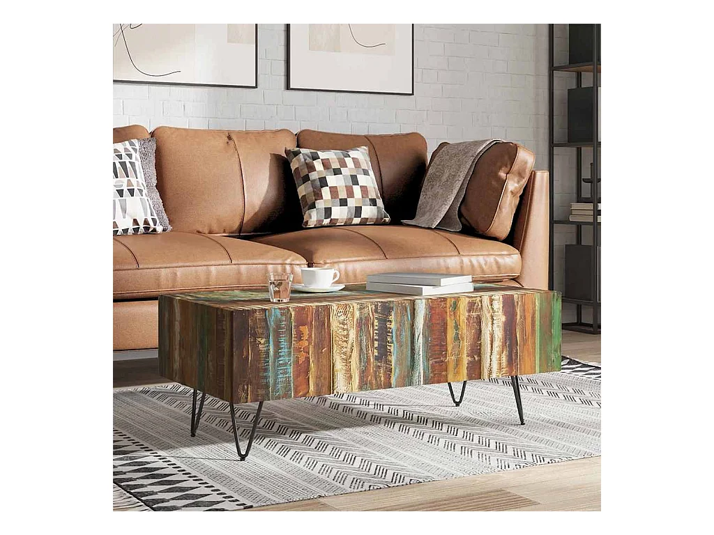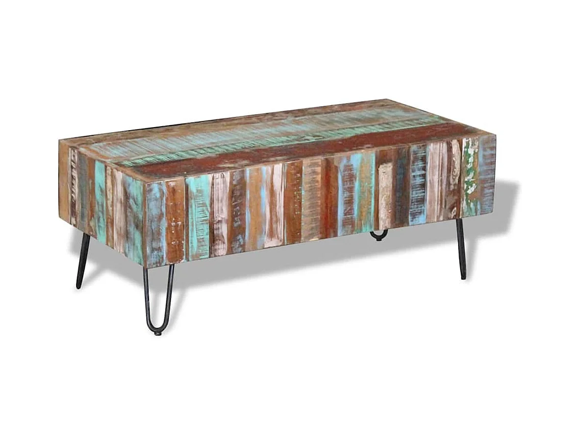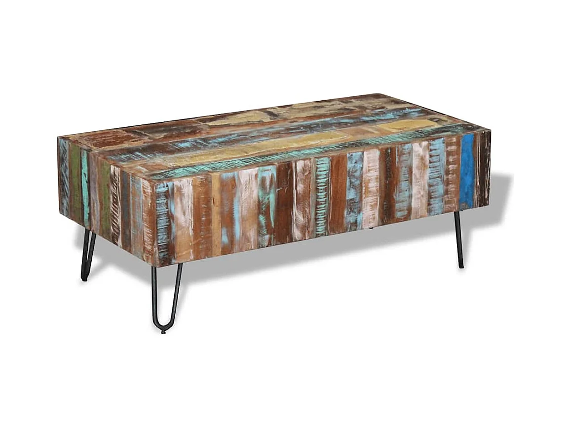 Table basse multicolore 80x80x35 cm bois de récupération massif
