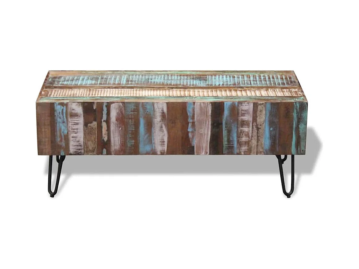 Table basse multicolore 50x50x38 cm bois de récupération massif