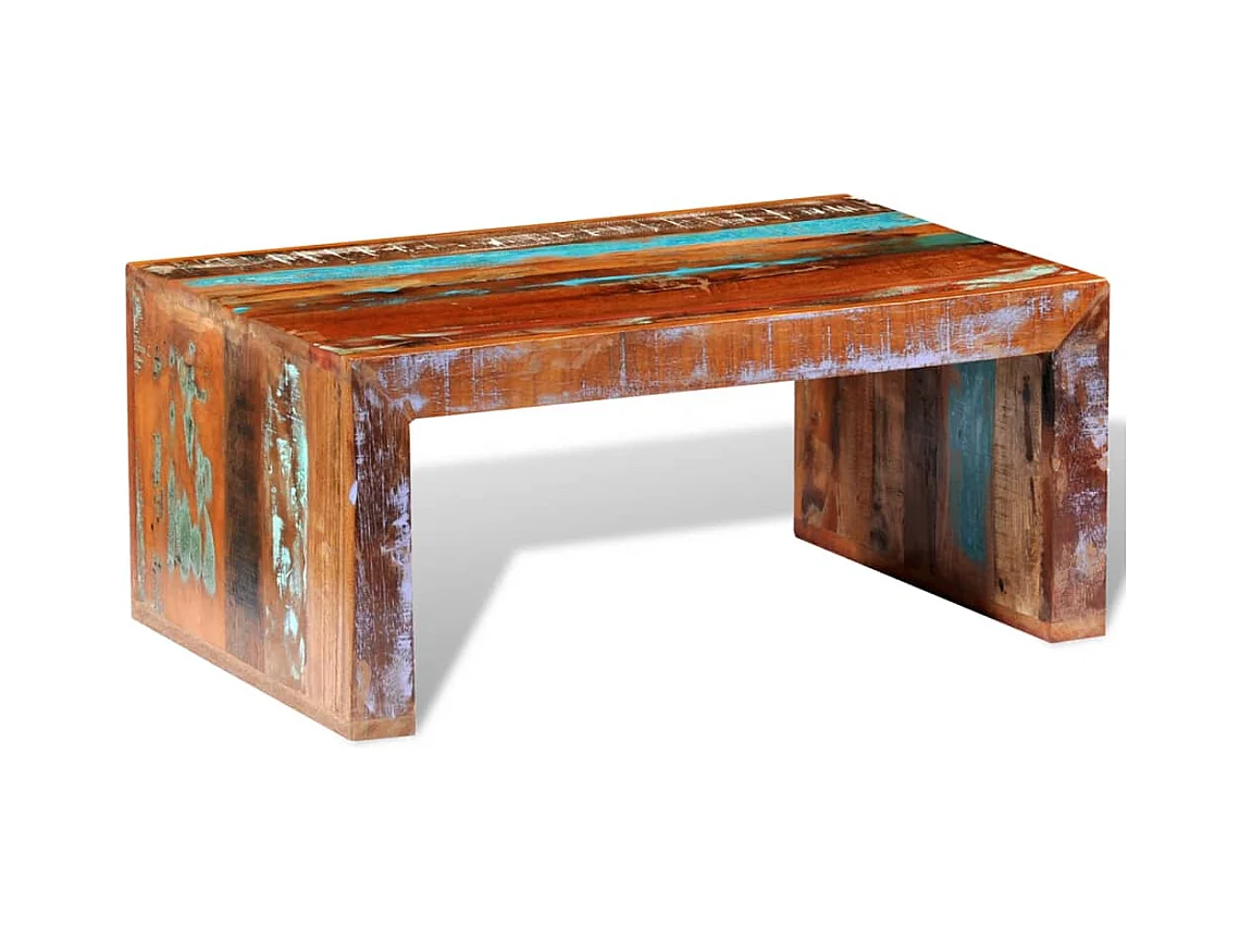 Table basse multicolore 50x50x35 cm bois de récupération massif