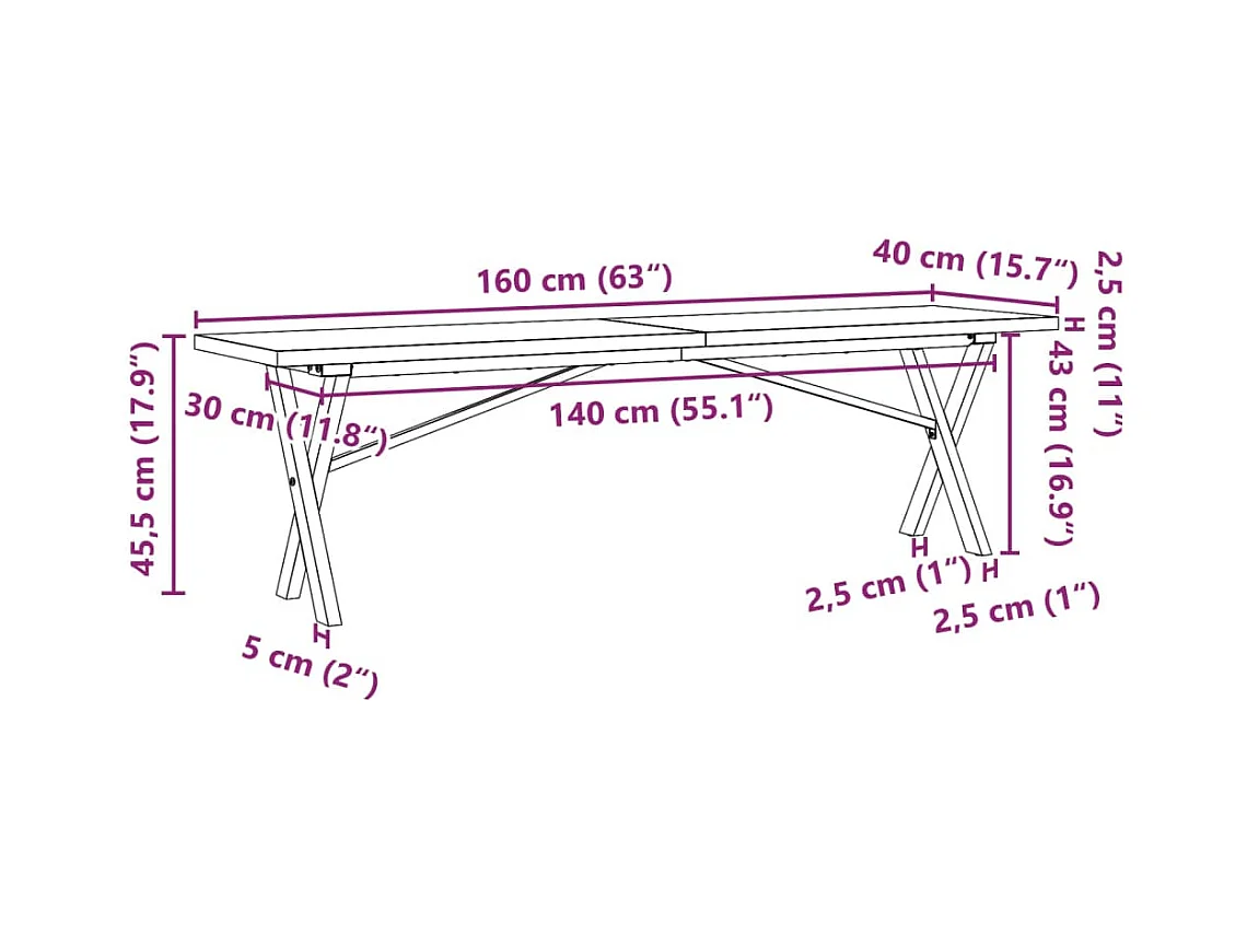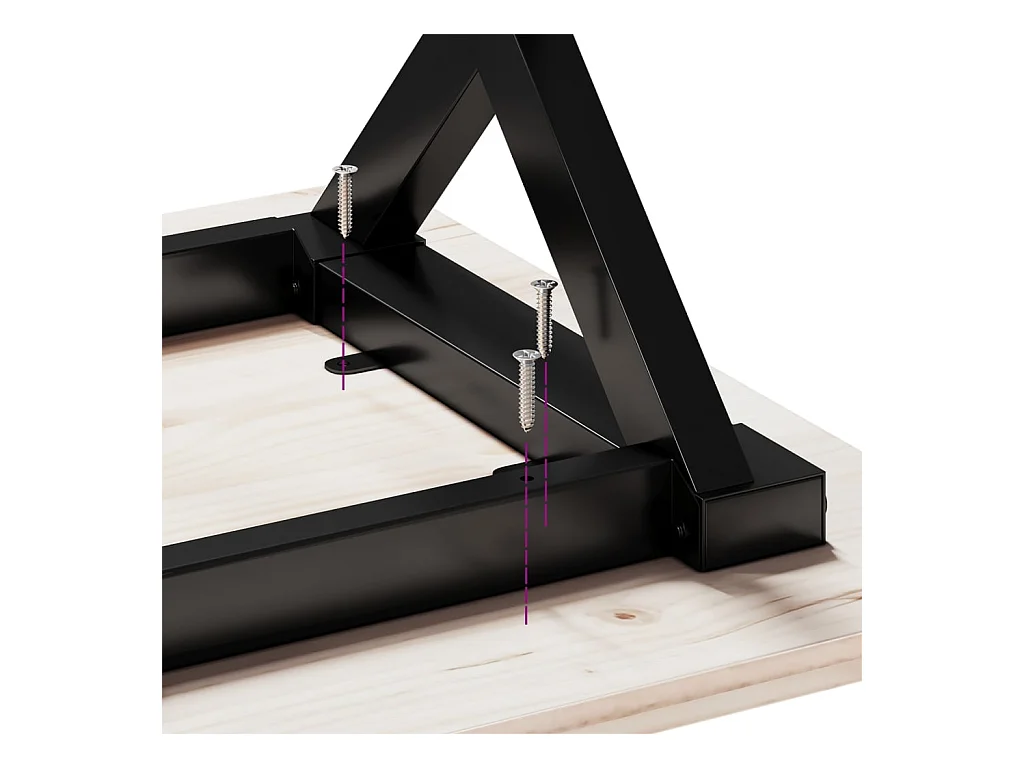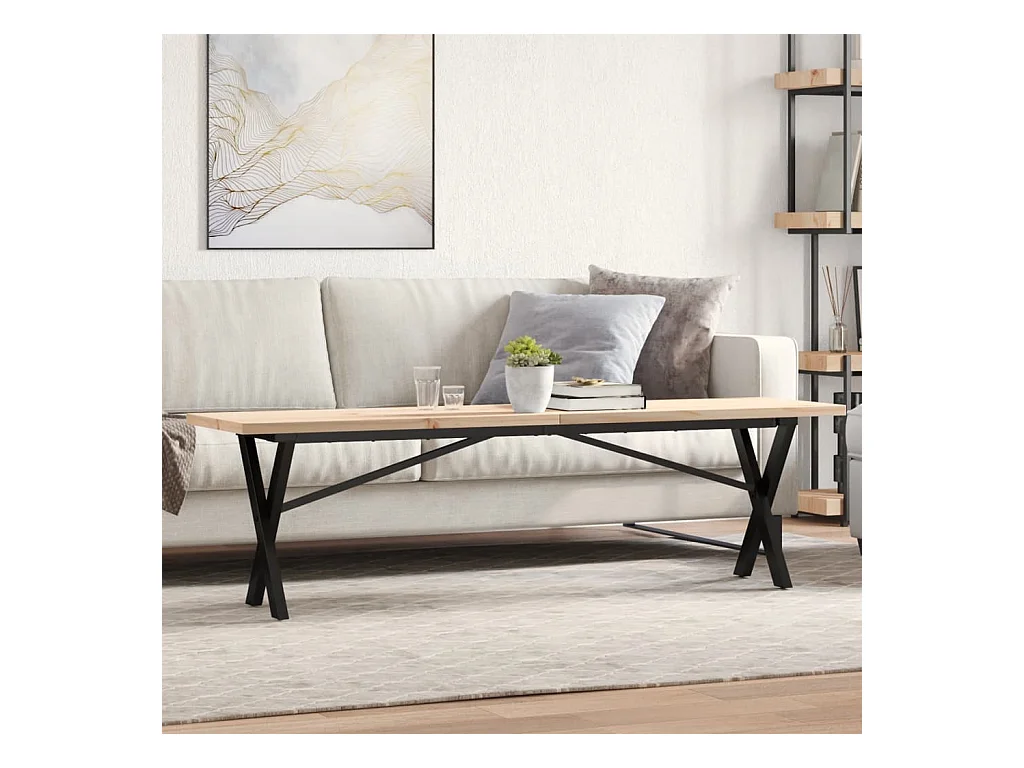Table basse cadre en X 160x40x45,5 cm bois de pin massif acier