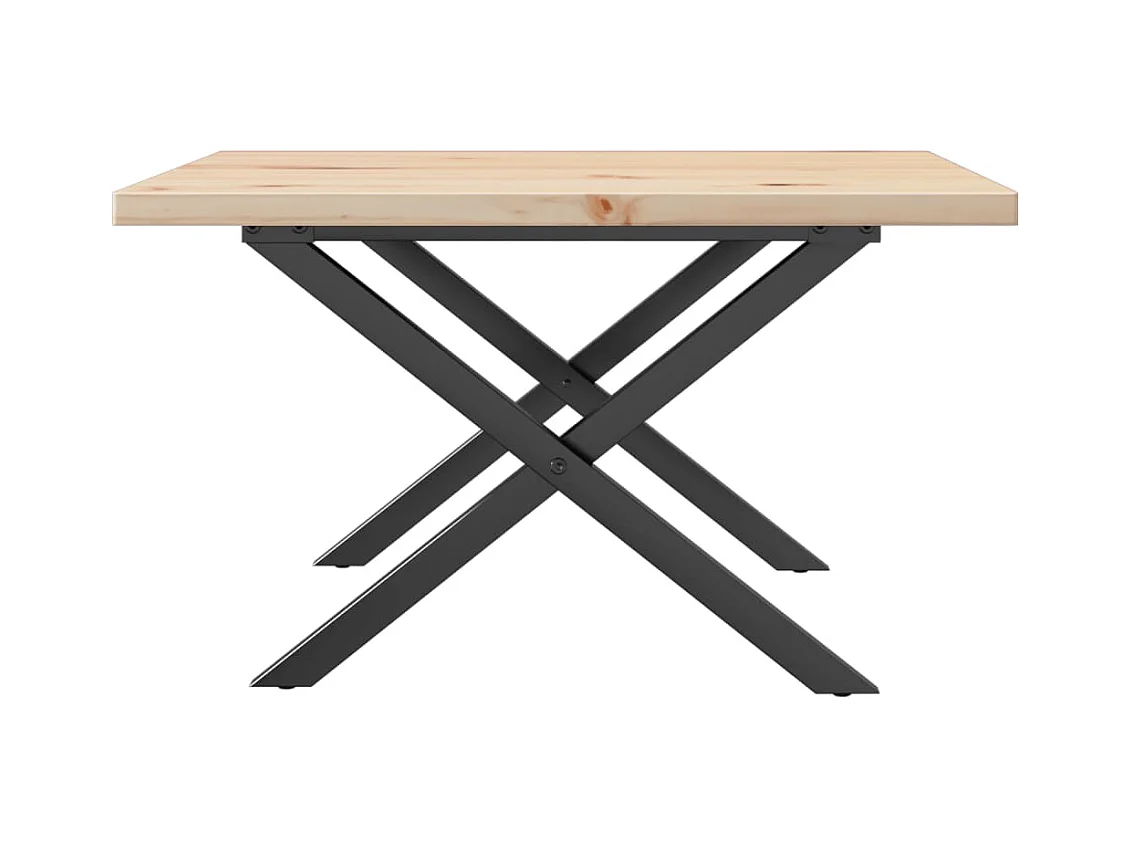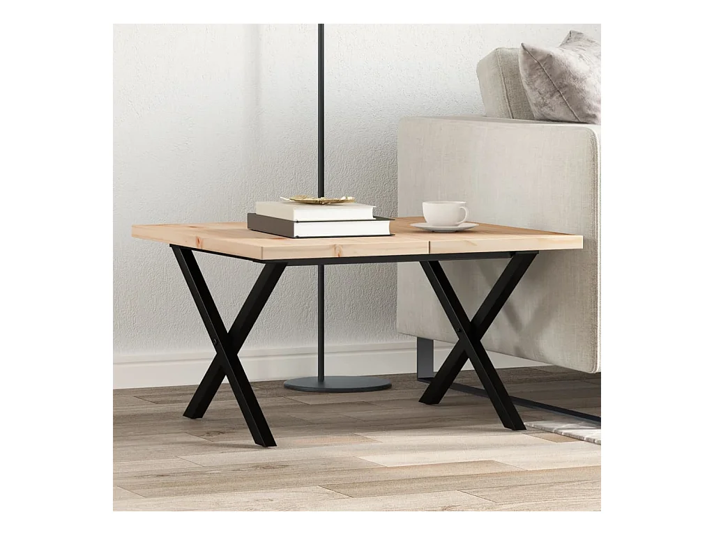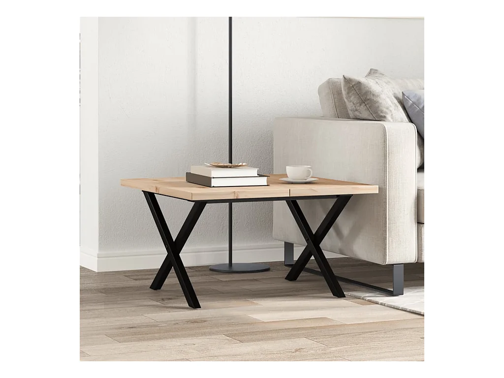 Table basse cadre en X 60x60x40,5cm bois de pin massif et acier
