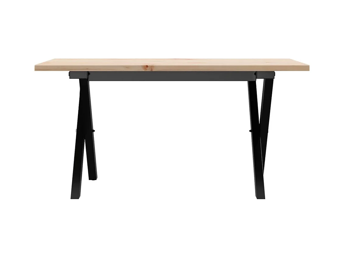 Table basse cadre en X 80x50x40 cm bois de pin massif et acier