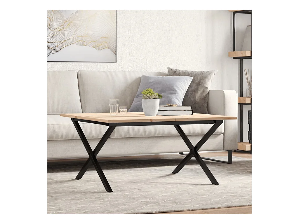 Table basse cadre en X 80x80x45 cm bois de pin massif et acier