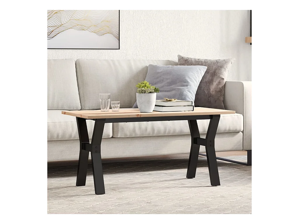 Table basse cadre en Y 100x50x45 cm bois de pin massif et fonte FR96204
