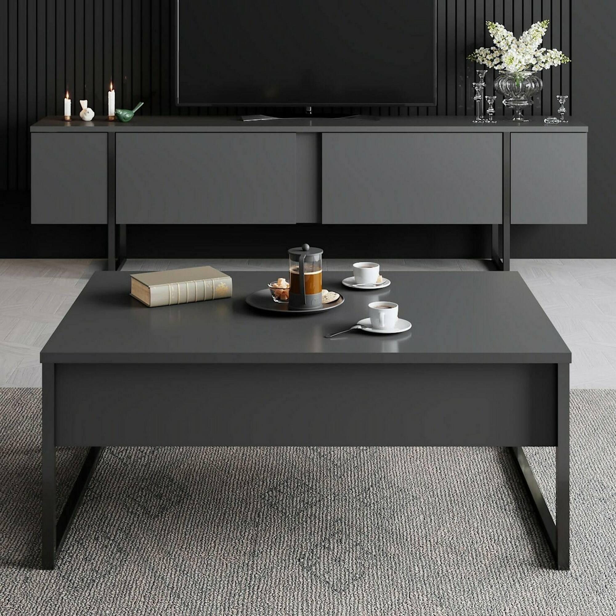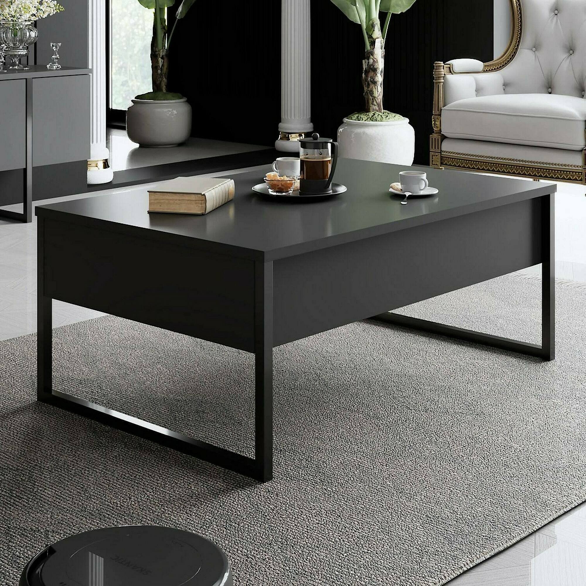 Table basse Antares, Table basse, Porte-revues pour canapé, Etagère de salon, 90x60h40 cm, Anthracite et Noir