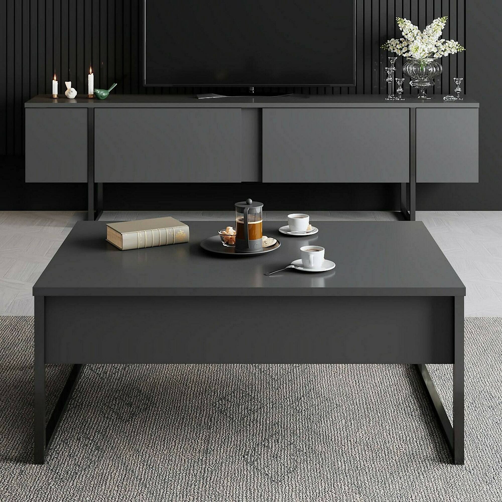 Table basse Canis, Table basse, Porte-revues pour canapé, Etagère de salon, 90x60h40 cm, Anthracite et Noir