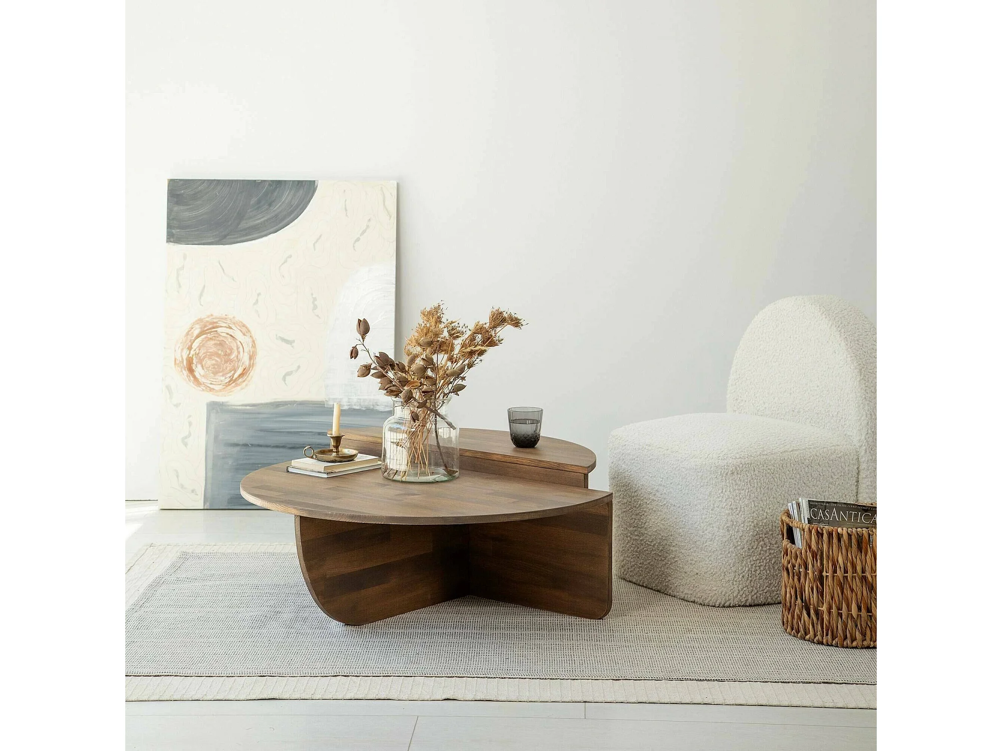 Table basse Canopus, Table basse, Porte-revues pour canapé, Etagère de salon, 90x60h35 cm, Noyer
